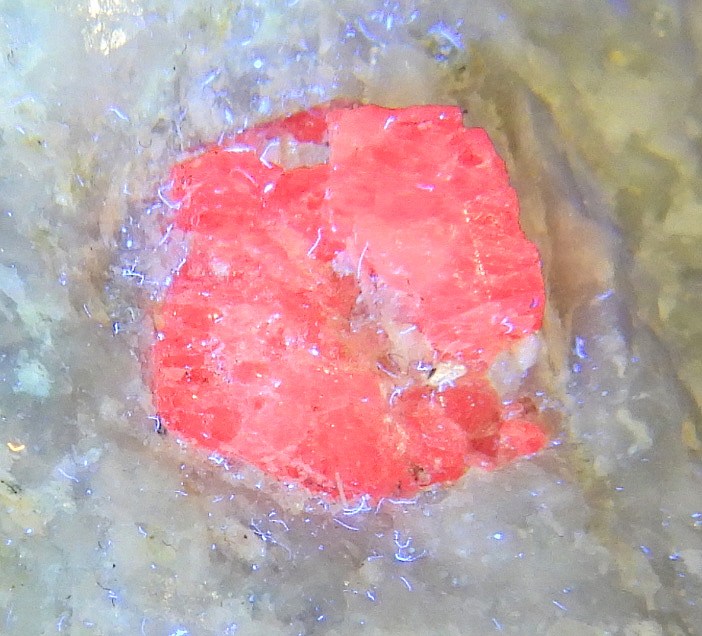大理石上に成長した美しい結晶。紫外線長波で蛍光します。