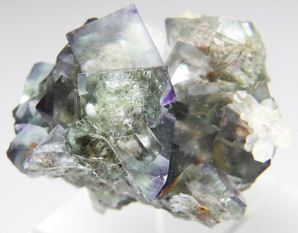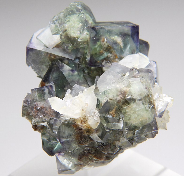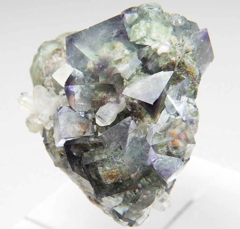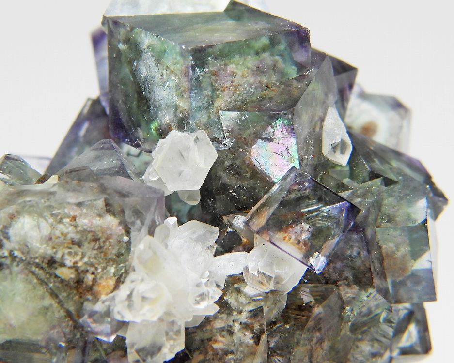 迷彩色の美しい結晶群。紫外線長波で蛍光し白熱灯下でカラーチェンジします。