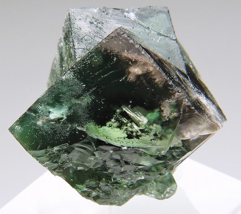 透明度の高い美しい貫入双晶群で。太陽光と紫外線長波で蛍光します。