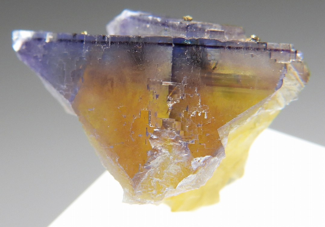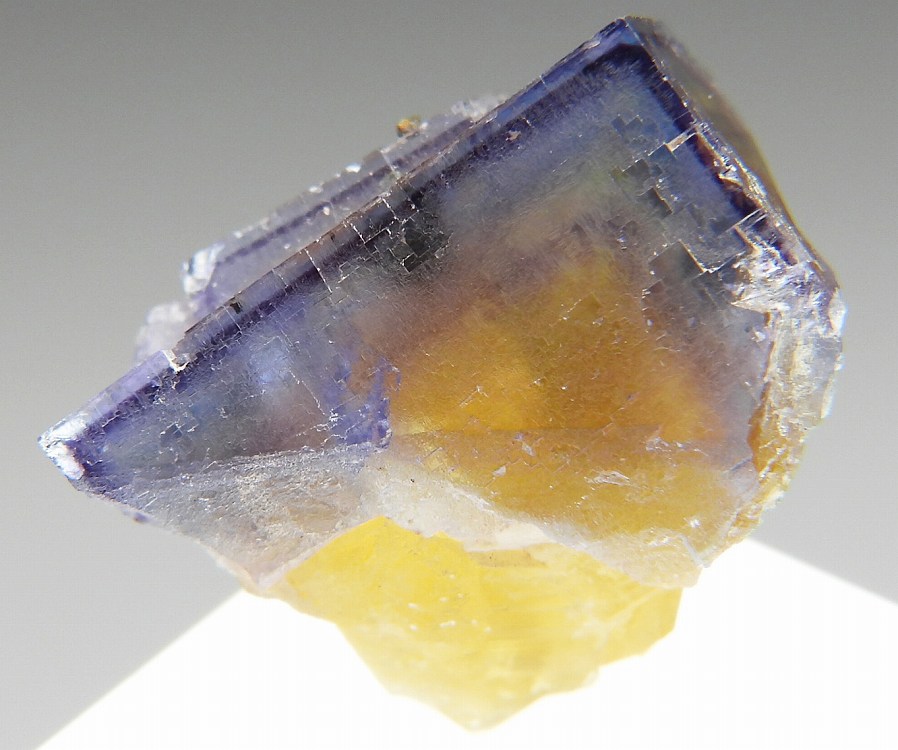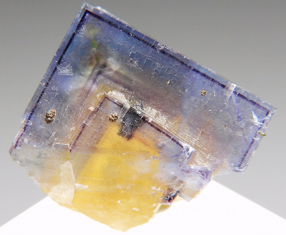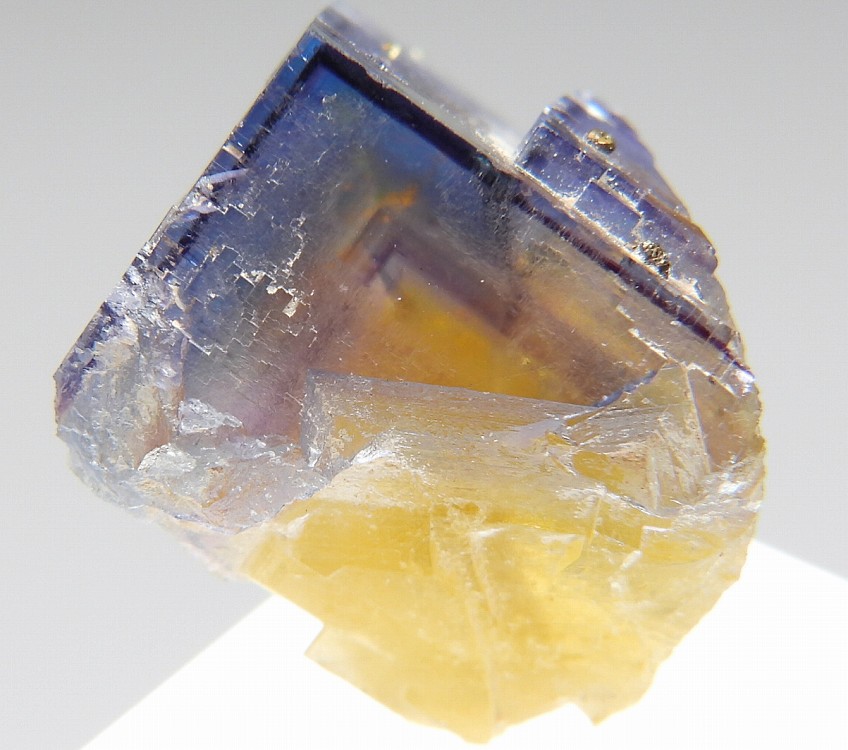パープル、マリンブルー、イエローのゾーニングが美しいマルチカラーの結晶群。紫外線長波で蛍光し白熱灯下でカラーチェンジします。