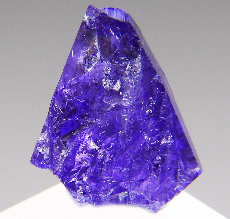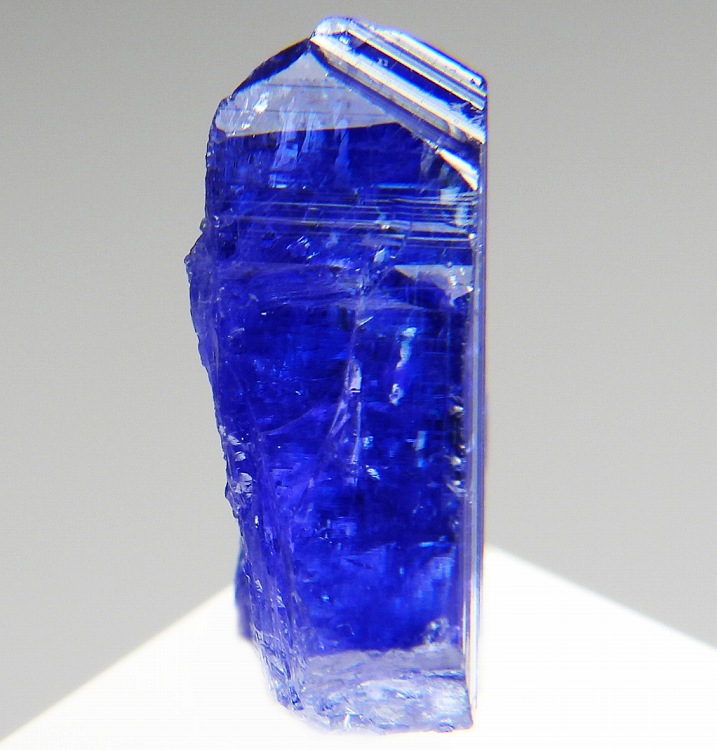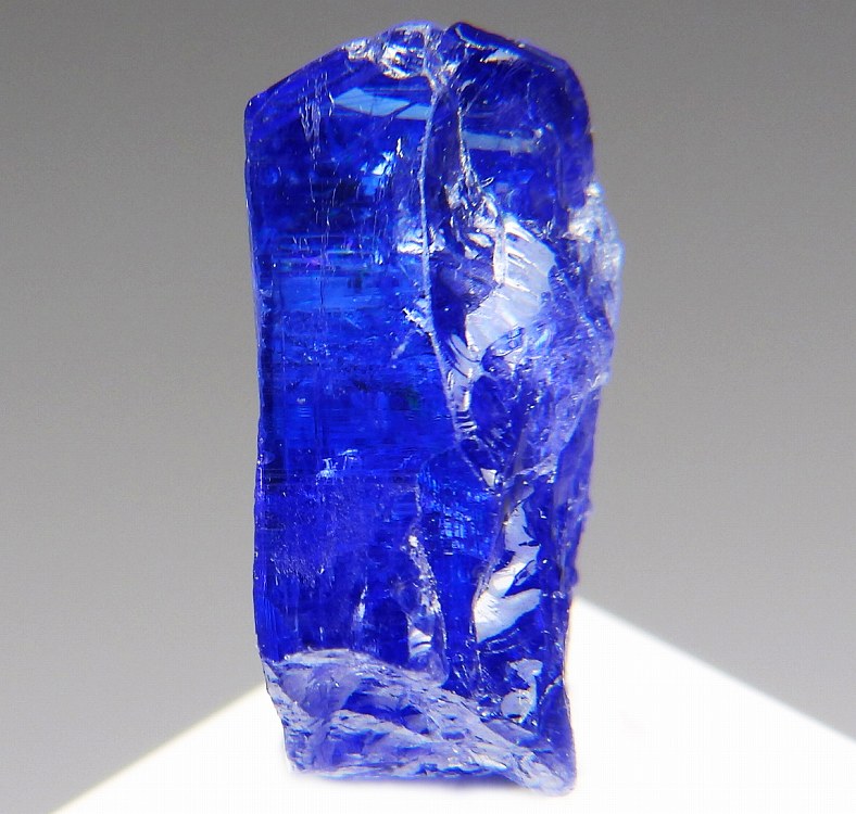 大変美しい多色性が明瞭なタンザナイトの結晶です。通常光源下で撮影。※液晶モニターの前では偏光された光源の影響で写真よりさらに多色性が極端に強調されて見えます。