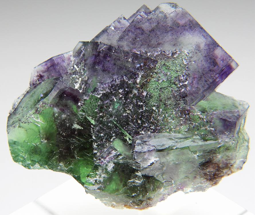 迷彩色の美しい結晶群。紫外線長波で蛍光し白熱灯下でカラーチェンジします。