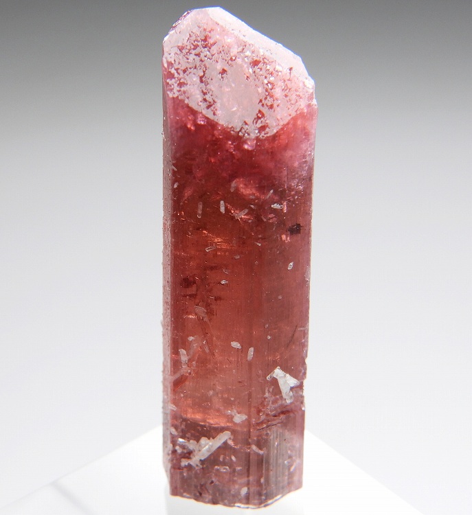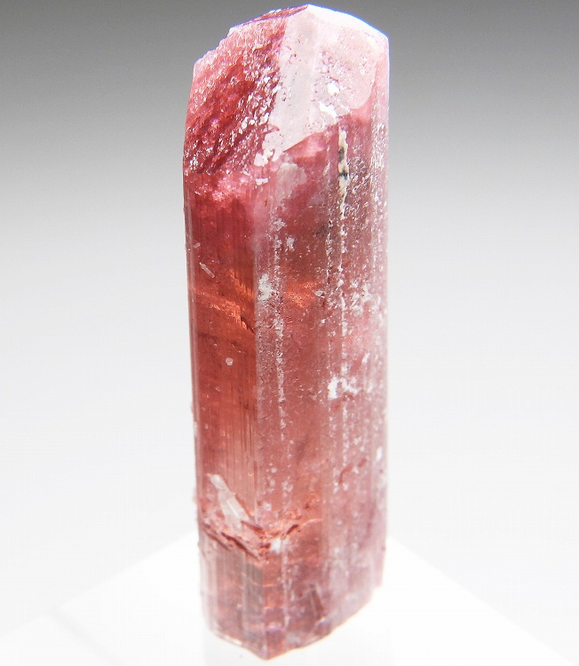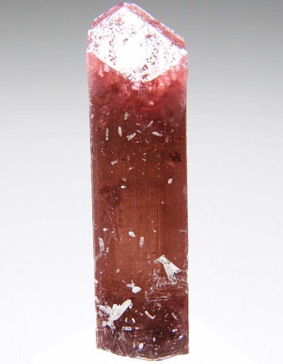 大きく成長した往年の美しいワインレッドのルベライト。透過光でとても美しい色彩が見られます。