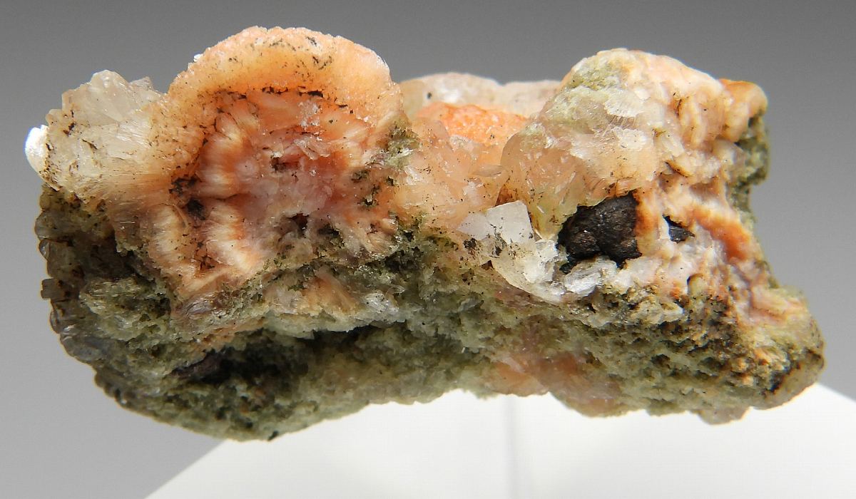 放射状成長したトムソン沸石の結晶群です。