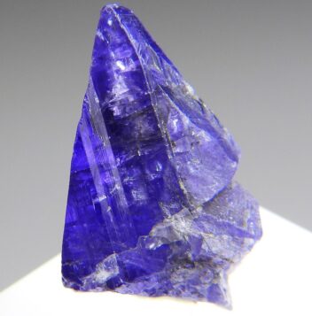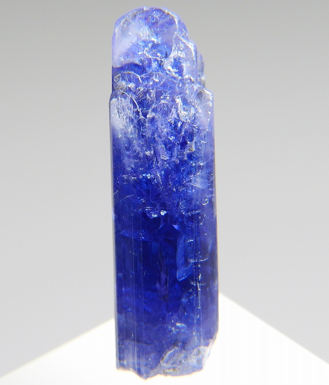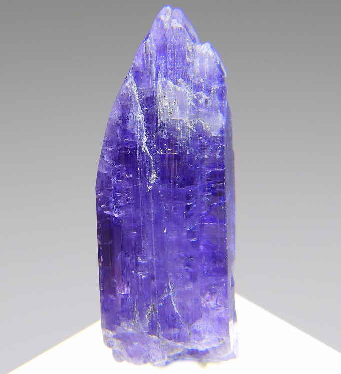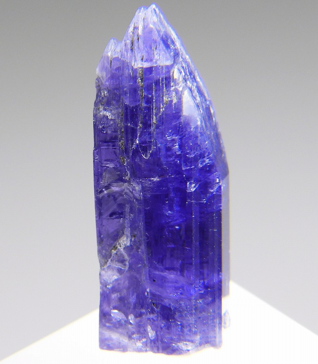 大変美しい多色性が明瞭なタンザナイトの結晶です。通常光源下で撮影。※液晶モニターの前では偏光された光源の影響で写真よりさらに多色性が極端に強調されて見えます。