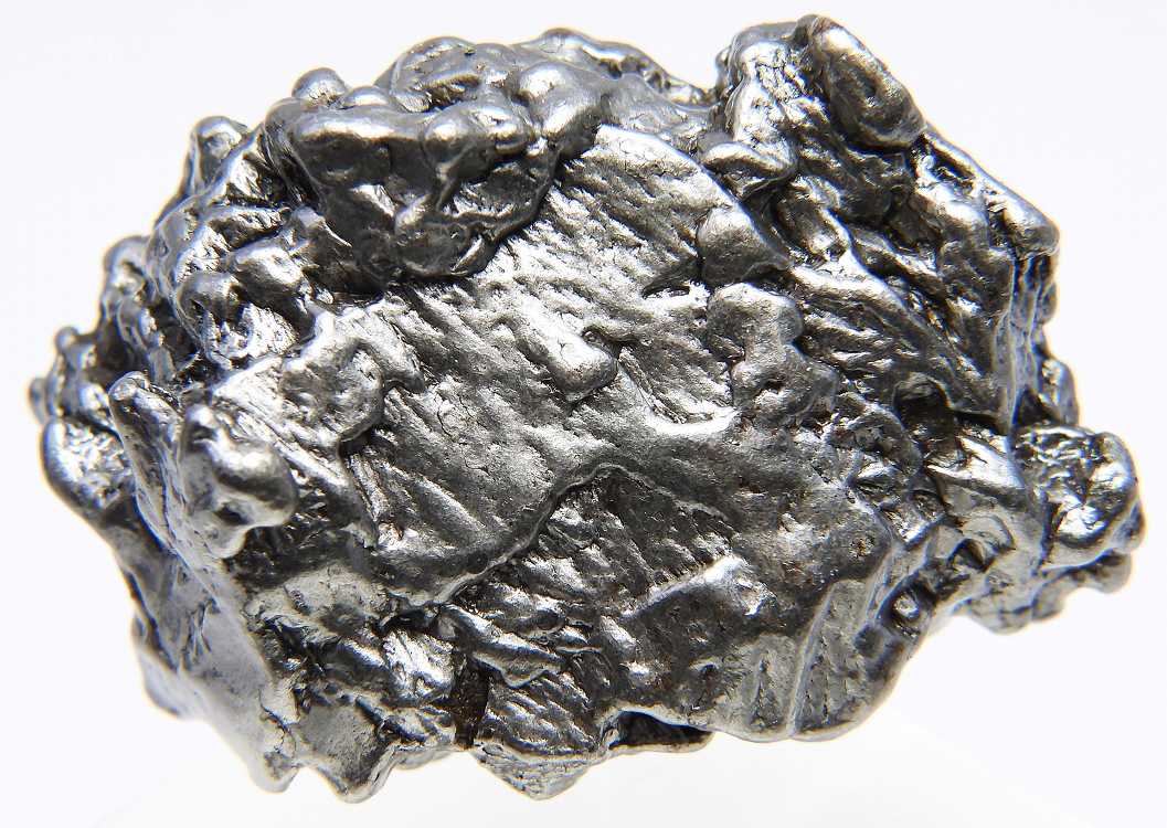 切断面に黒っぽく見える珪酸塩鉱物を含む特徴のあるグループIAB-MGに分類される鉄隕石です。切断研磨面を酸処理すると粗粒のウィドマンシュテッテン構造があらわれます。未切断標本。