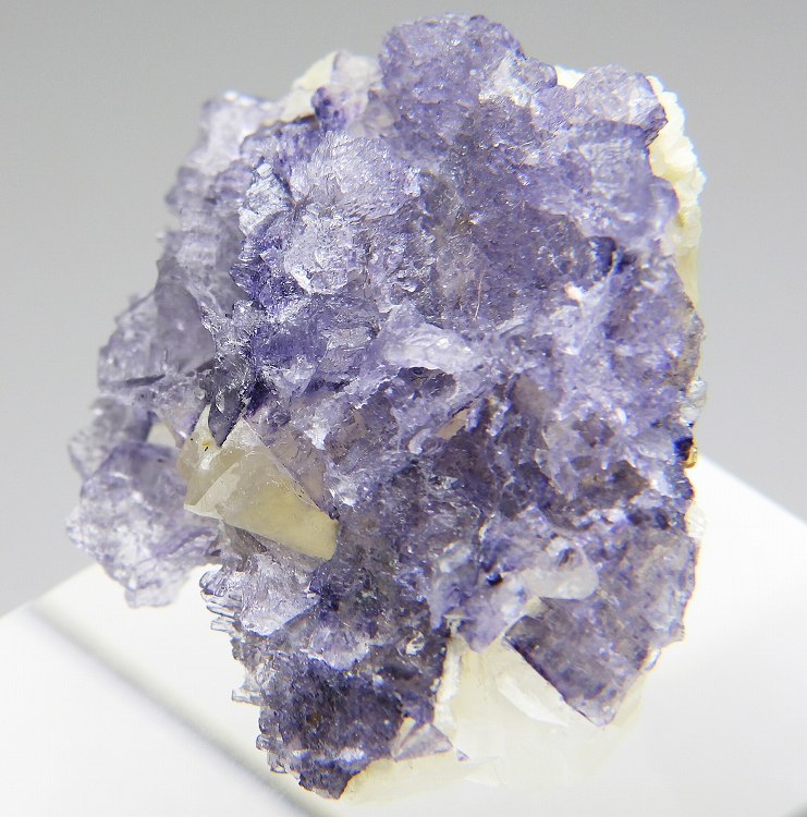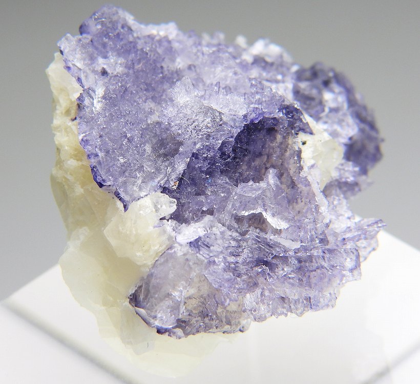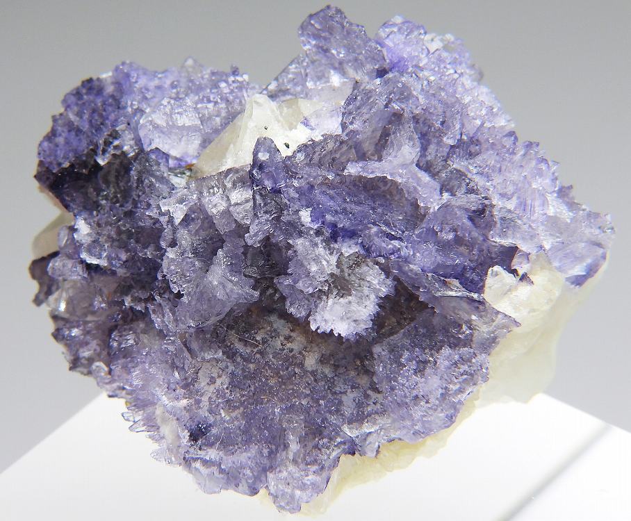 カルサイト上に成長したエッチングを受けたエルムウッドの美しい結晶群。白熱灯下でカラーチェンジします。
