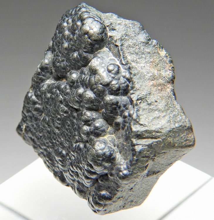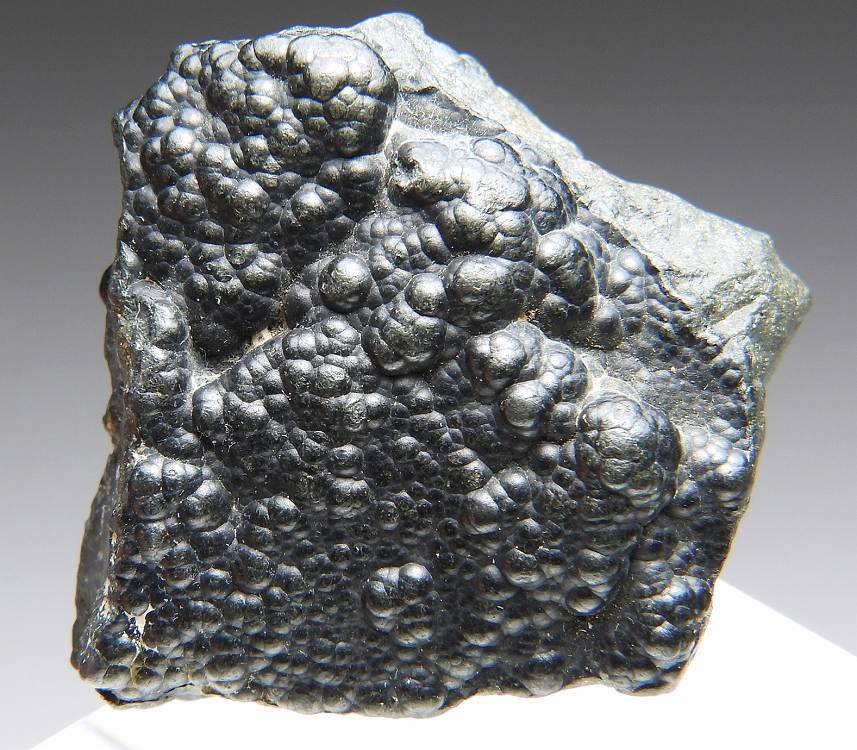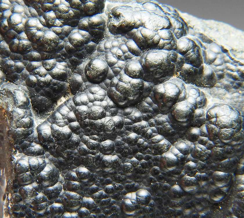 バッデレイ石の珍しいぶどう状成長した結晶群です。