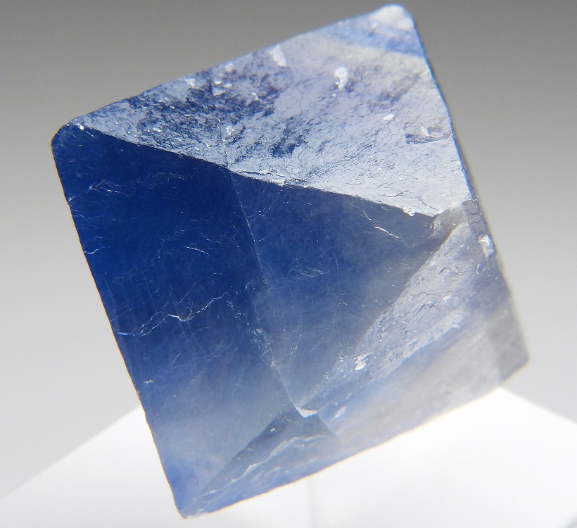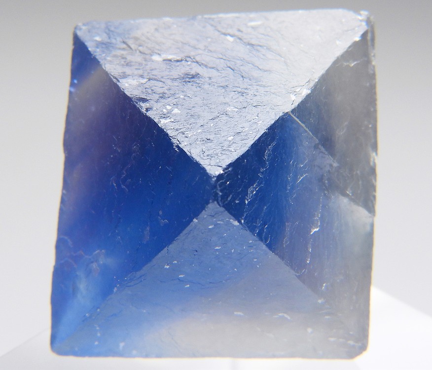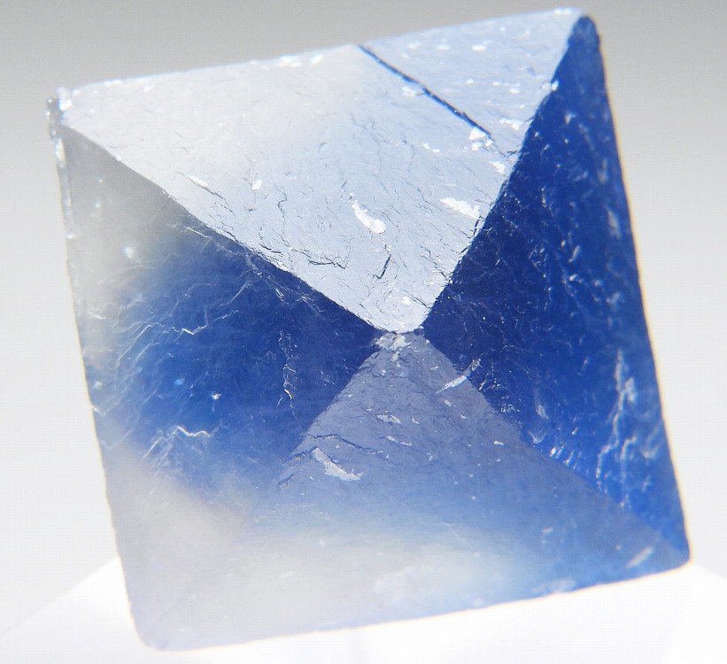 ニューメキシコのブルーフローライトを劈開面に沿って八面体にカットした標本です。白熱灯下でカラーチェンジします。