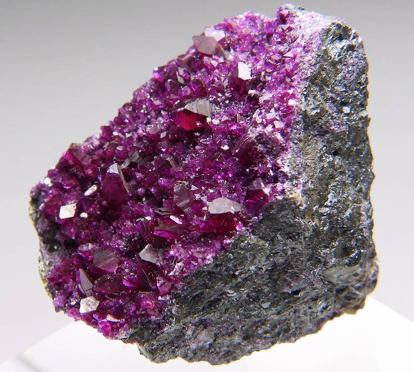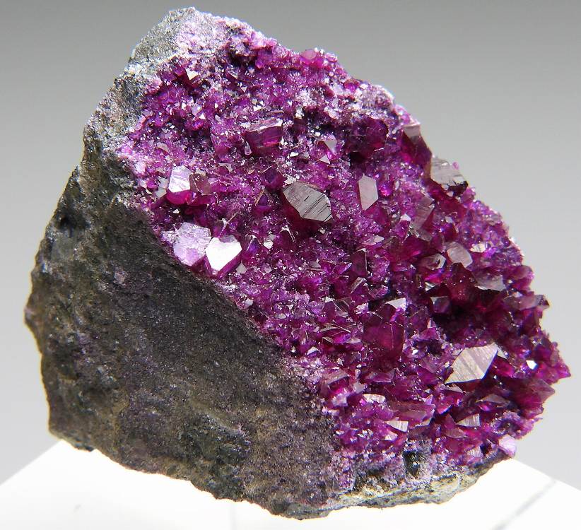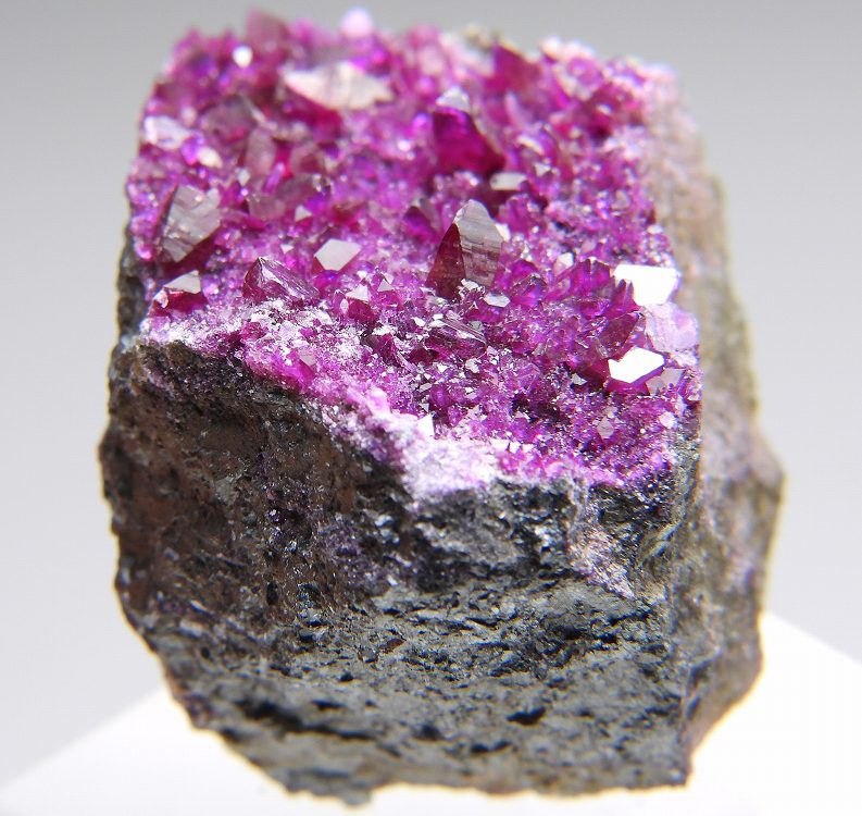 菫泥石は特有の濃紫色の結晶が美しい鉱物です。Crを含有する緑泥石の一種で最近トルコでの産出も稀になりました。濃色の綺麗な結晶が見られるとても美しい標本です。