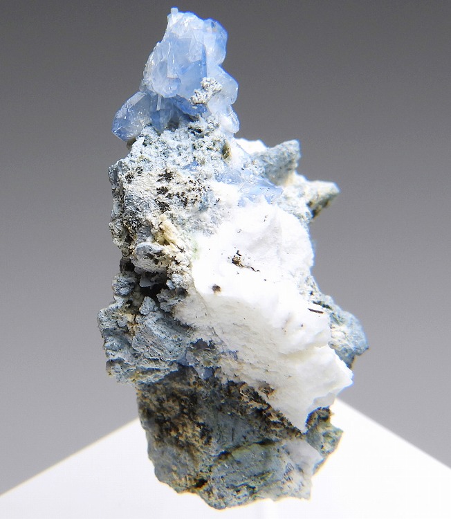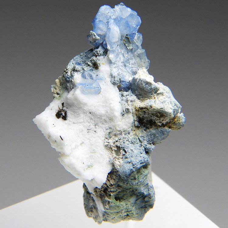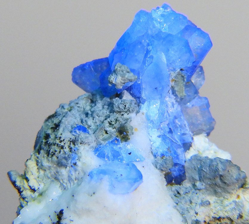 端正なベニト石の結晶群です。紫外線短波で明るい蛍光を発します。