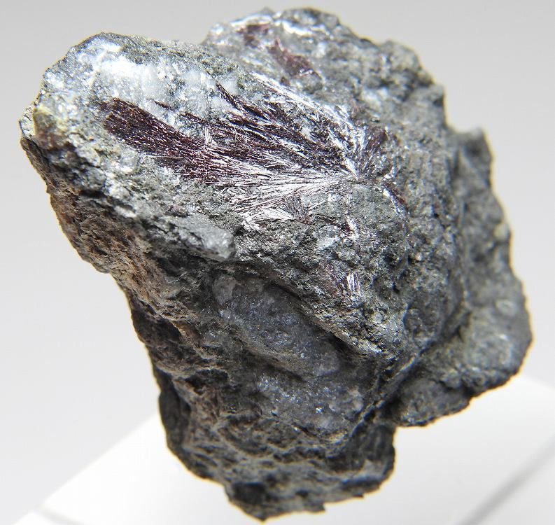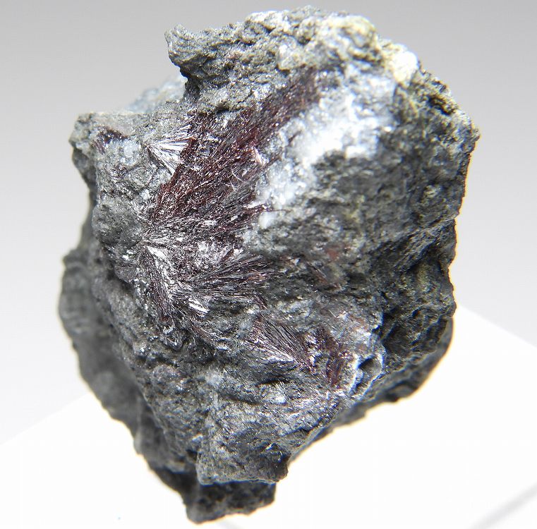 暗赤色の放射状結晶が綺麗です。