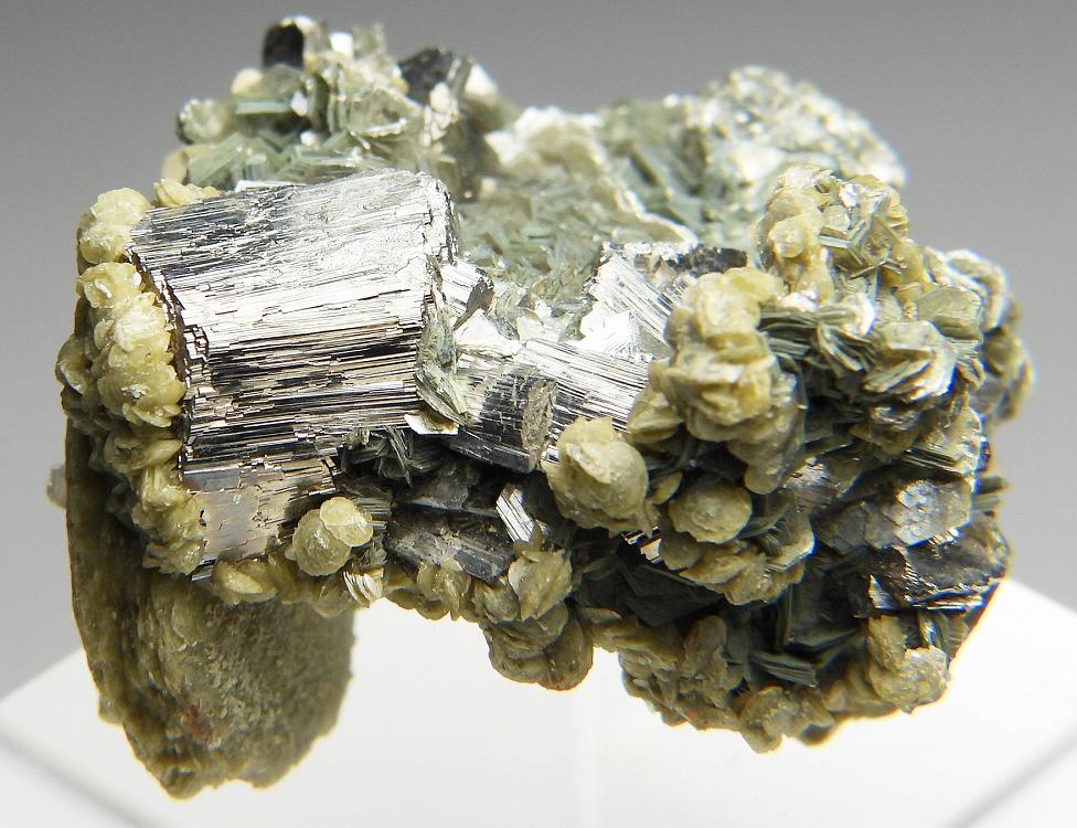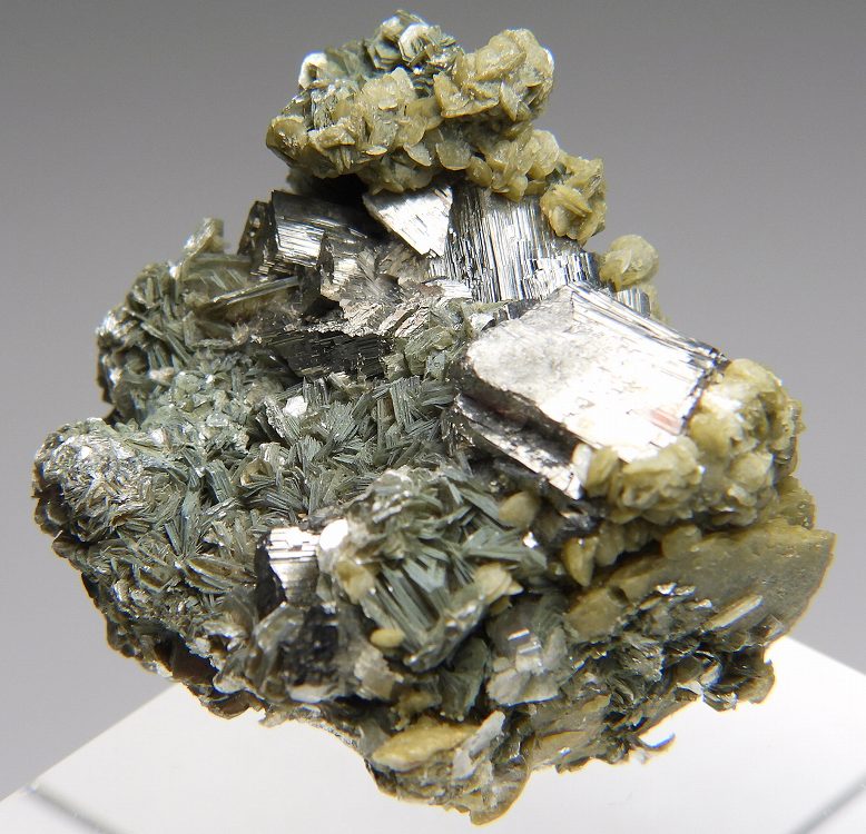 雲母を伴った硫砒鉄鉱の結晶群です。