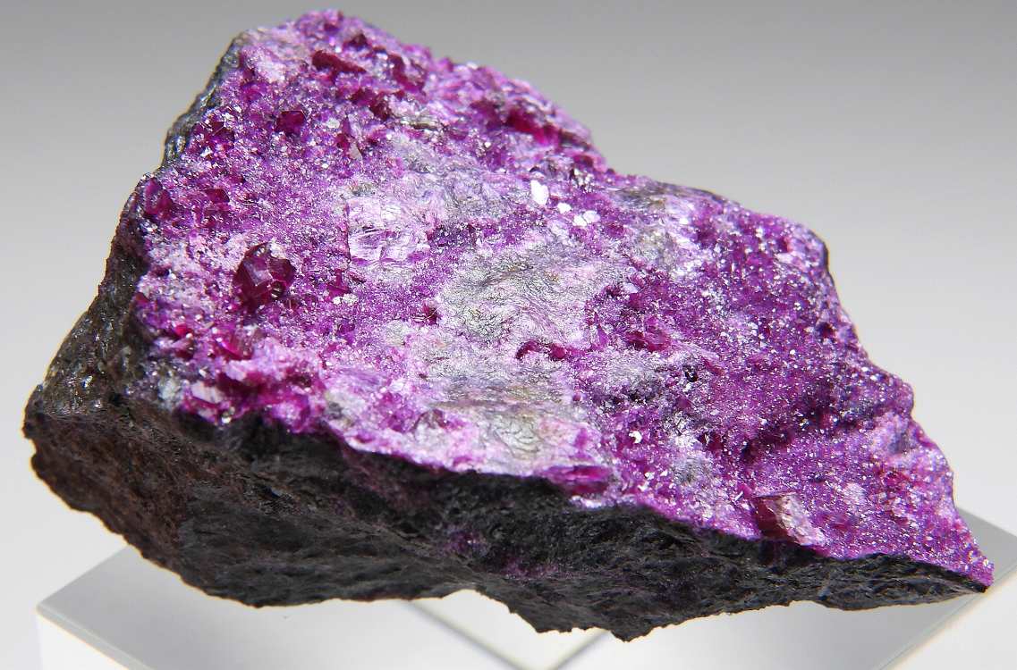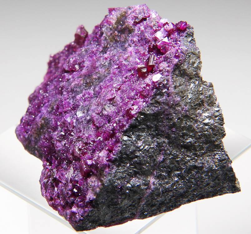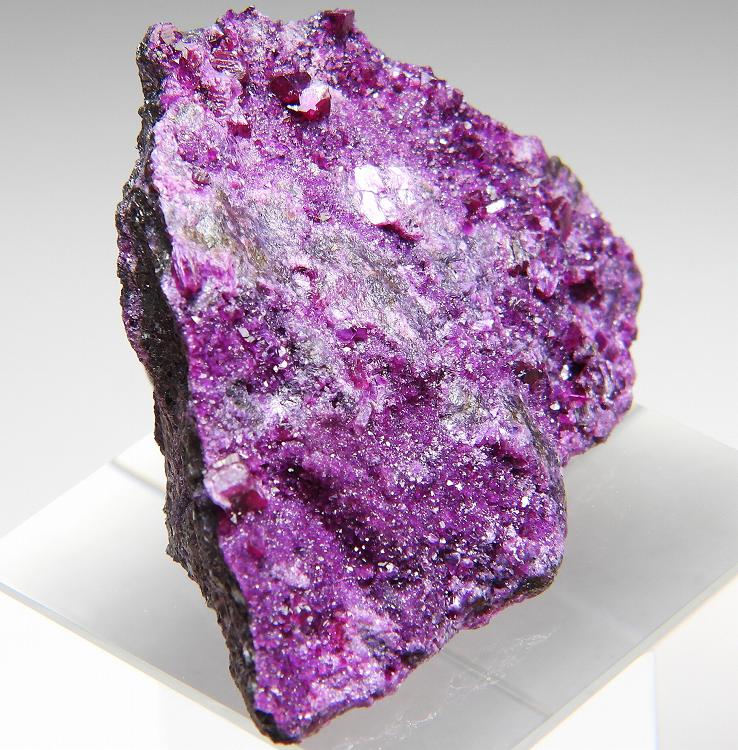 菫泥石は特有の濃紫色の結晶が美しい鉱物です。Crを含有する緑泥石の一種で最近トルコでの産出も稀になりました。濃色の綺麗な結晶が見られるとても美しい標本です。