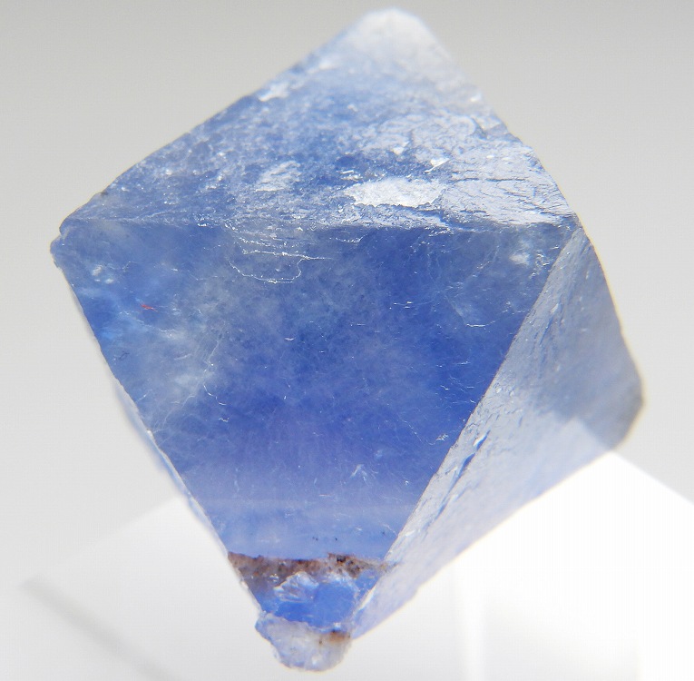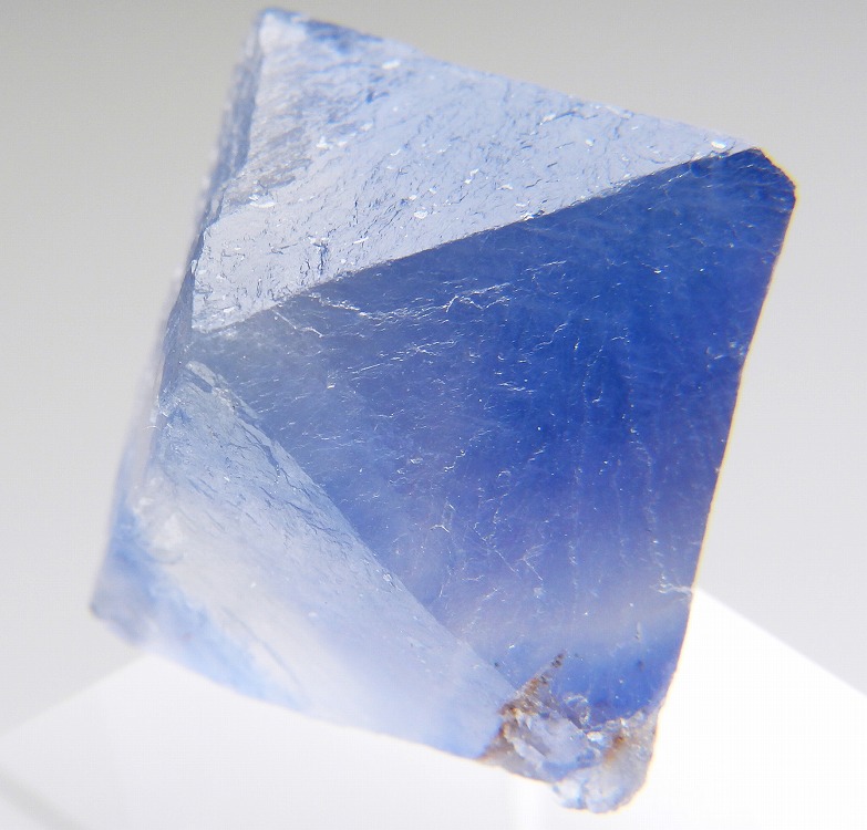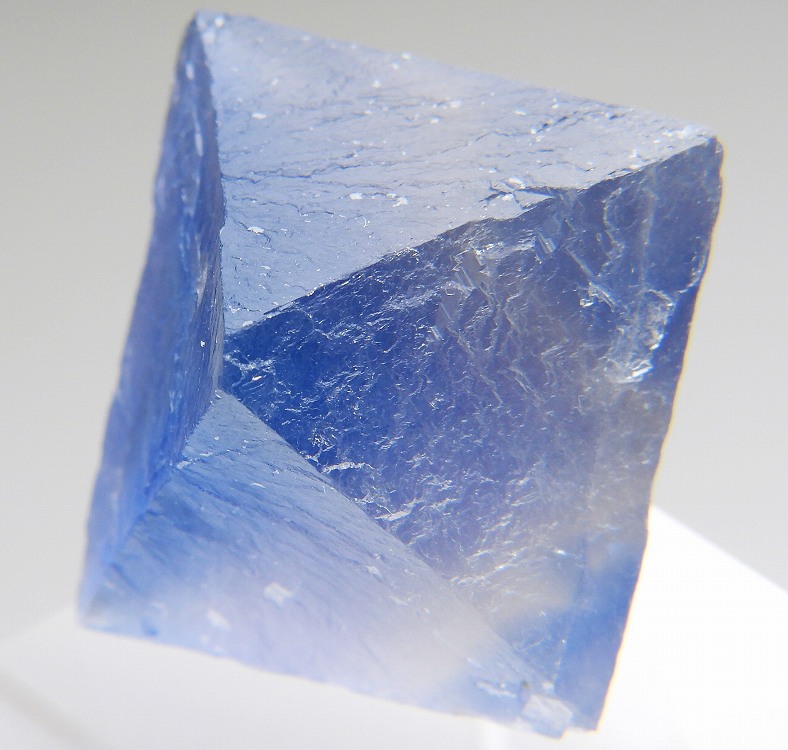 ニューメキシコのブルーフローライトを劈開面に沿って八面体にカットした標本です。白熱灯下でカラーチェンジします。