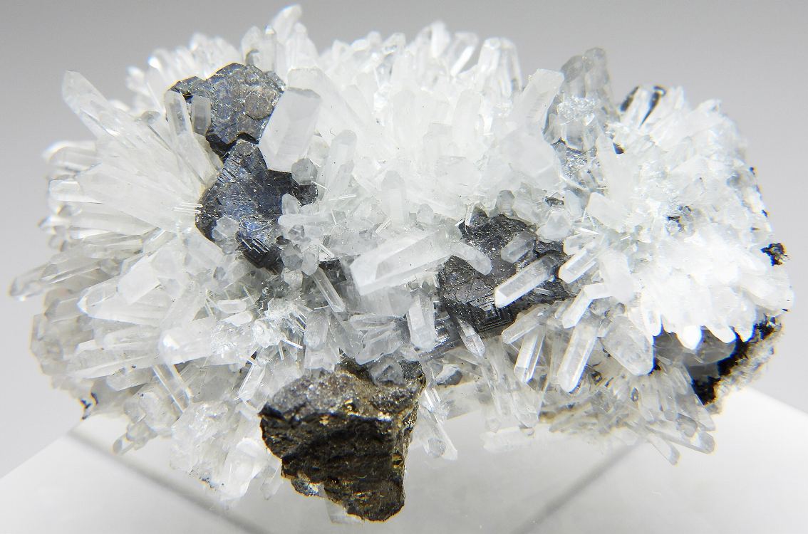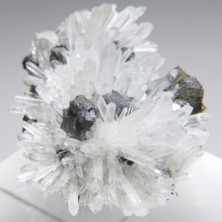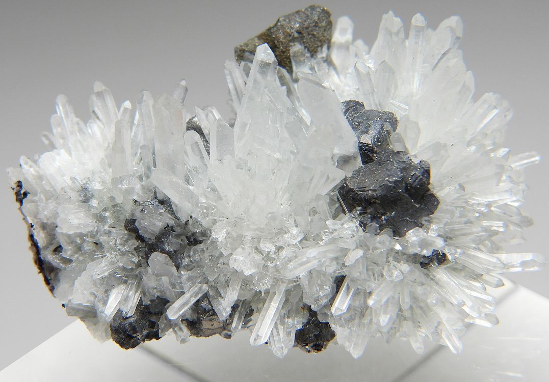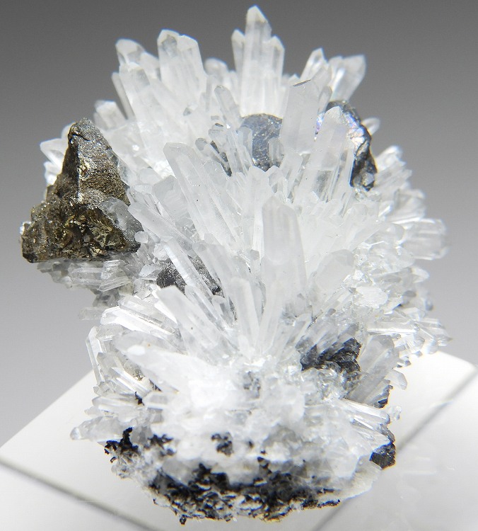 水晶クラスターに黄銅鉱が共生した標本です。