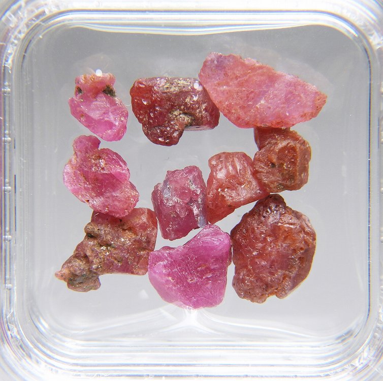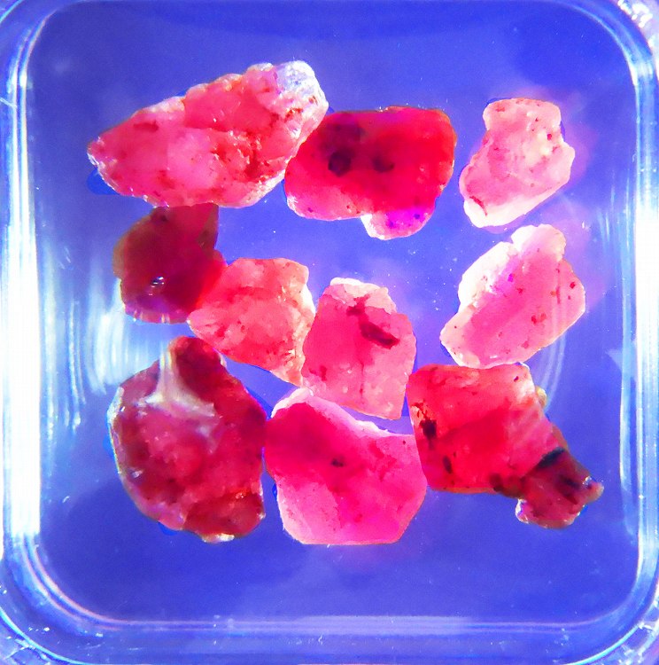 ウィンザ産のサファイアやルビーは2007年の発見ですが、今では希少産地の標本です。10点セット。紫外線長波で蛍光を示します。