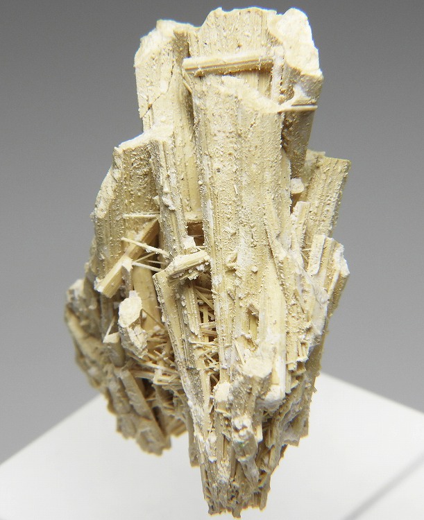 輝安鉱の結晶を完全に置換した黄安華の標本です。