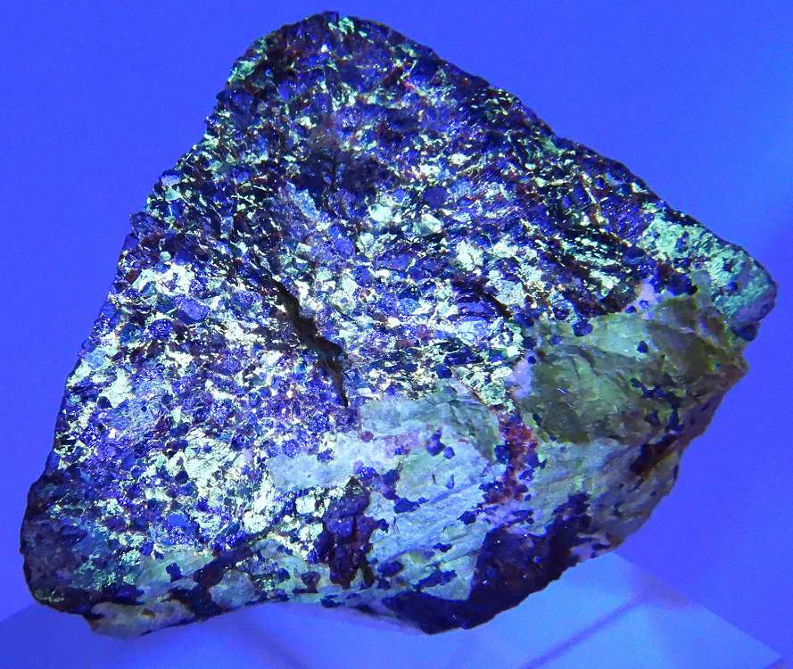 フランクリン鉄鉱と共生した紅亜鉛鉱です。珪亜鉛鉱部分が紫外線長波で蛍光します。