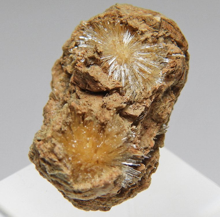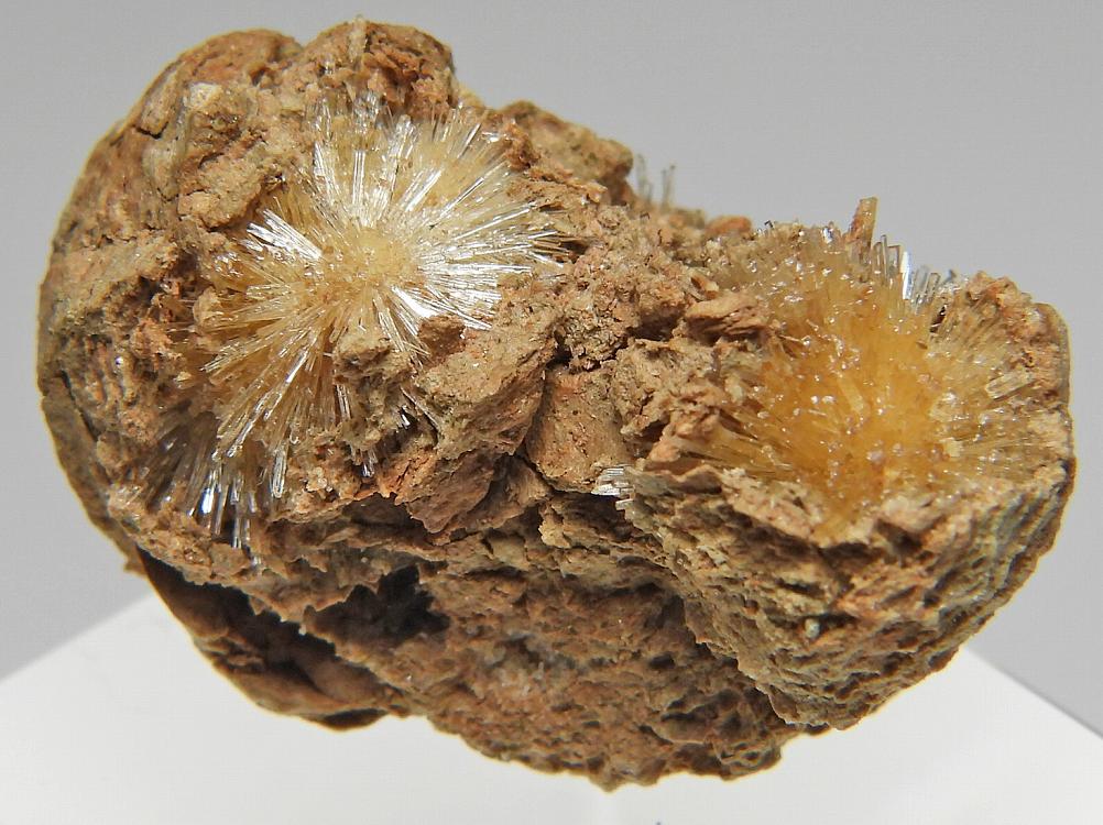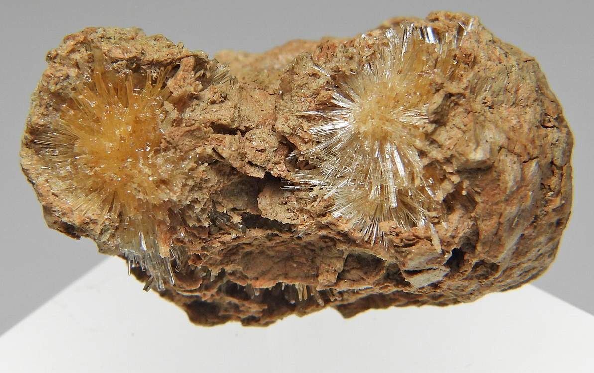 繊細な放射状結晶が綺麗な標本です。紫外線長波で蛍光します。