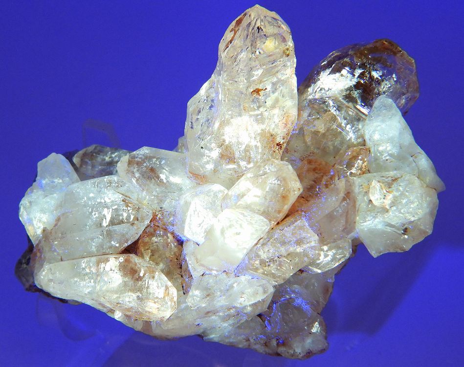 2023年初頭に炭化水素化合物を含む水晶の発見がこの産地でありました。産出初期の大型クラスターです。紫外線長波で明るく蛍光します。