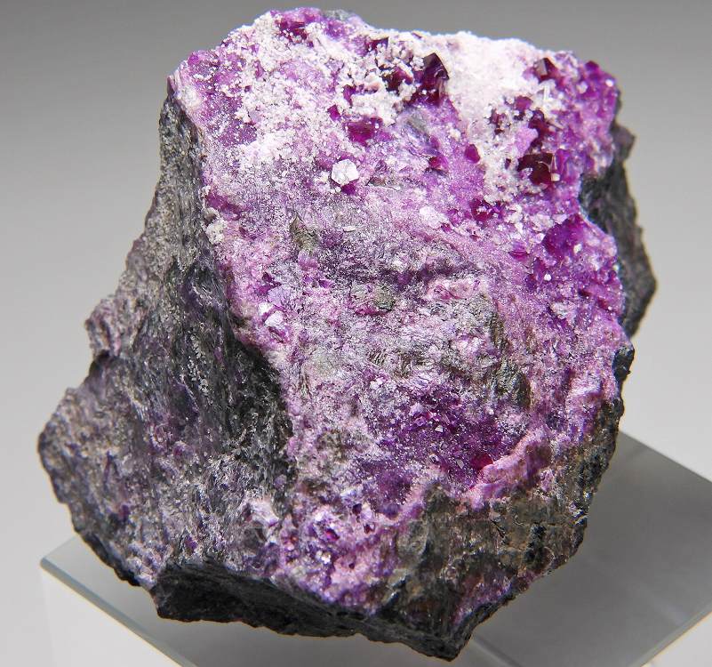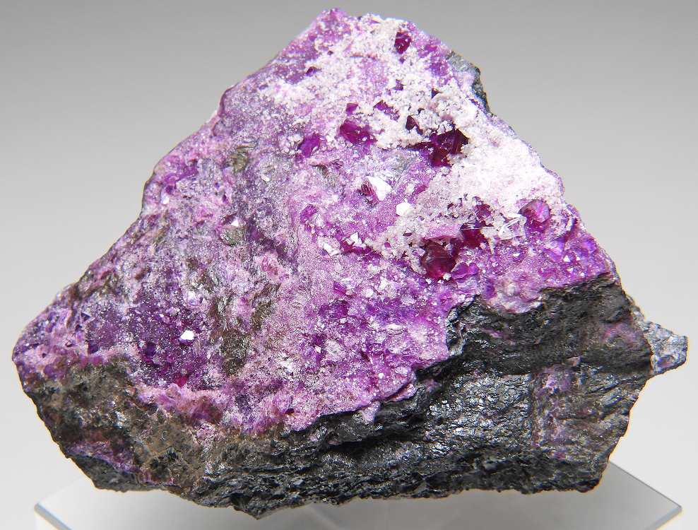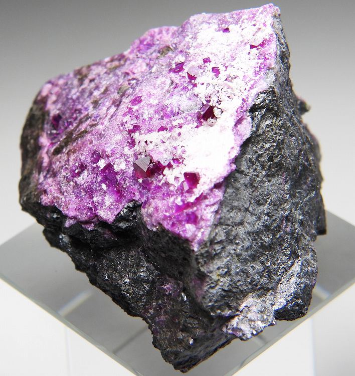 菫泥石は特有の濃紫色の結晶が美しい鉱物です。Crを含有する緑泥石の一種で最近トルコでの産出も稀になりました。濃色の綺麗な結晶が見られるとても美しい標本です。