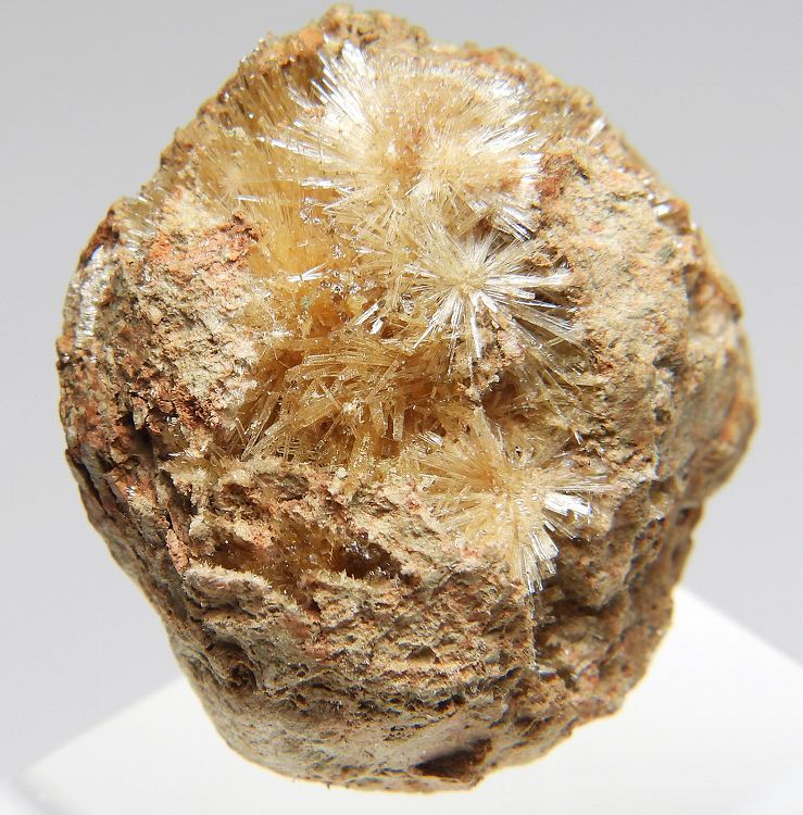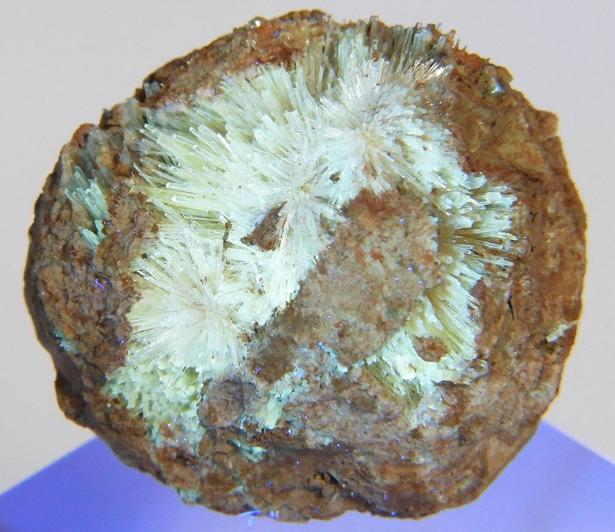 繊細な放射状結晶が綺麗な標本です。紫外線長波で蛍光します。