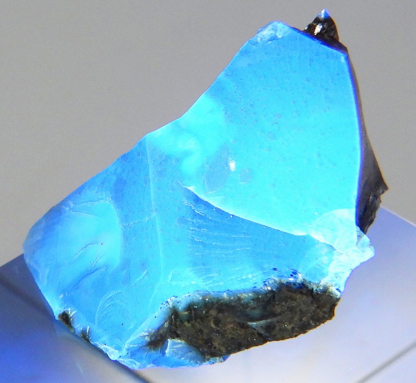 インドネシア産のブルーアンバー。紫外線長波を照射すると明るい蛍光を発します。