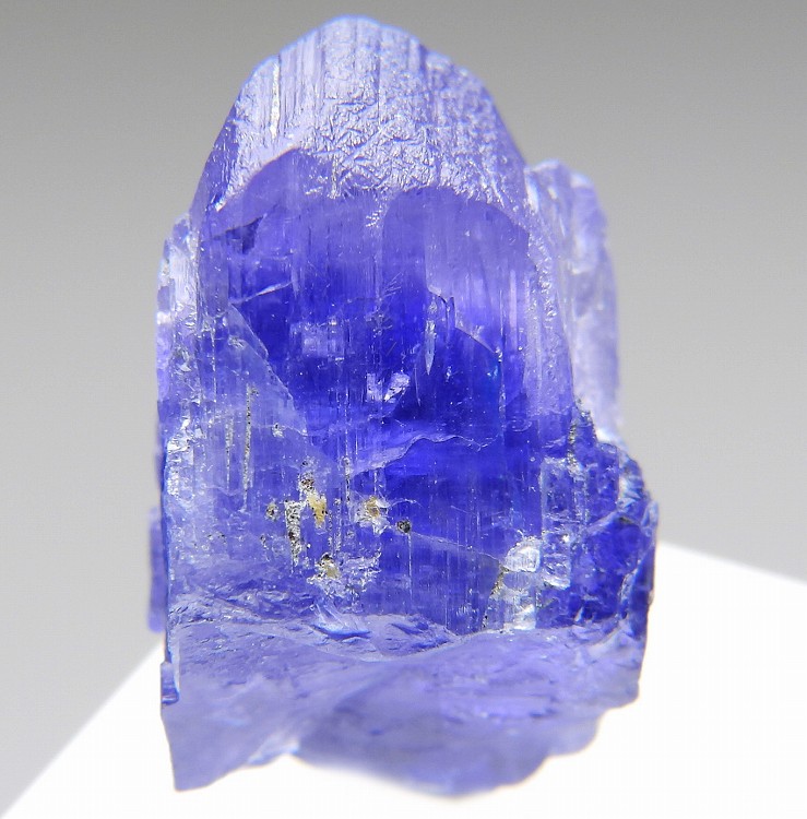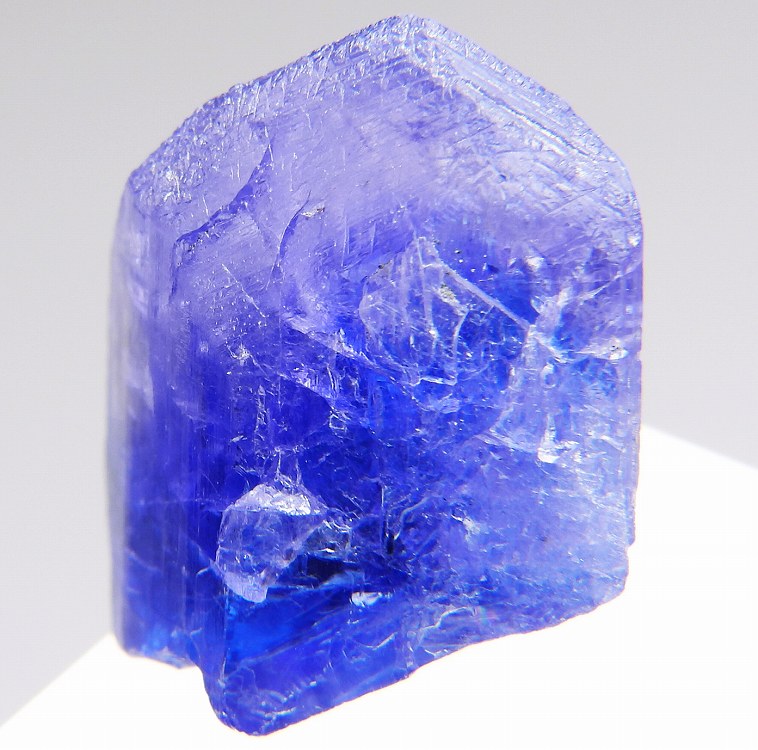 大変美しい多色性が明瞭なタンザナイトの結晶です。通常光源下で撮影。※液晶モニターの前では偏光された光源の影響で写真よりさらに多色性が極端に強調されて見えます。