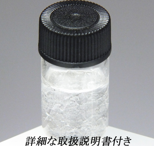 非常に珍しい鉱物で南極で最初に発見されました。おおよそ25℃以上で融解しはじめます。気温低下により室温で再結晶化することができます。急温急冷は体積膨張による瓶破損につながりますので避けて下さい。防湿二重構造でお届けします。※内容量は全て同じですが天然物ですので不純物や結晶化等に差異があります。