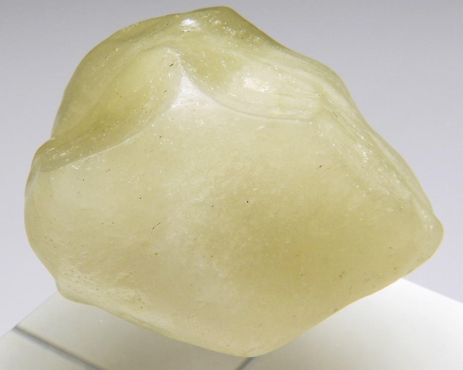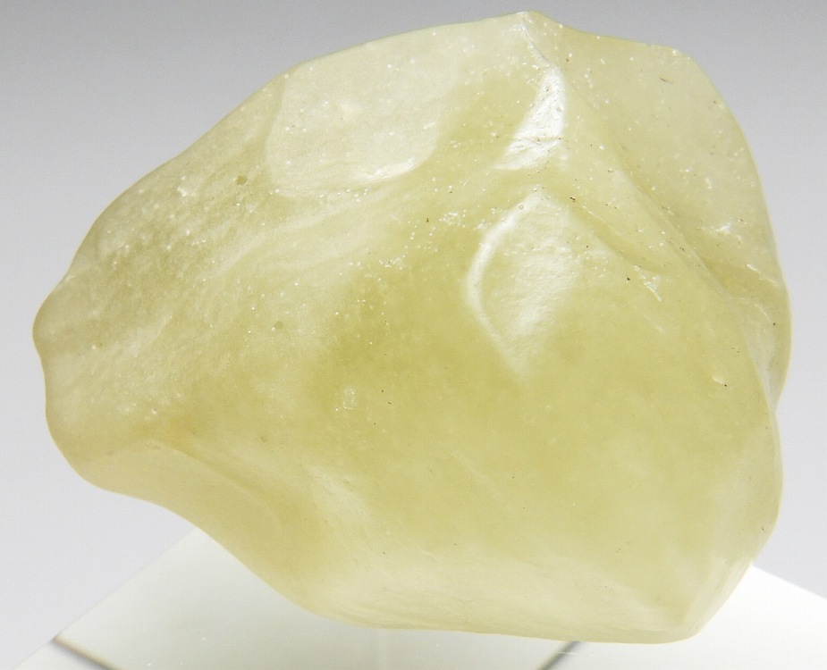 エジプトからリビアにかけての砂漠地帯で発見されたインパクトグラス。約2600万年前の隕石の衝突により生成したという説が有力です。黄色〜黄緑色に淡く色づいており内部にクリストバル石を含みます。現在リビアングラスの持ち出しは禁止されており高騰しつつあります。