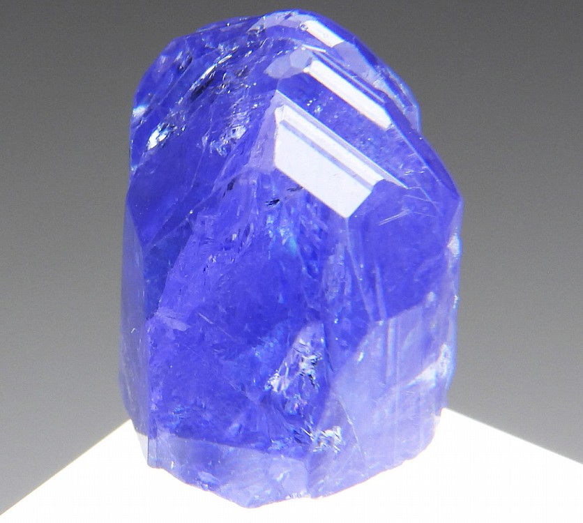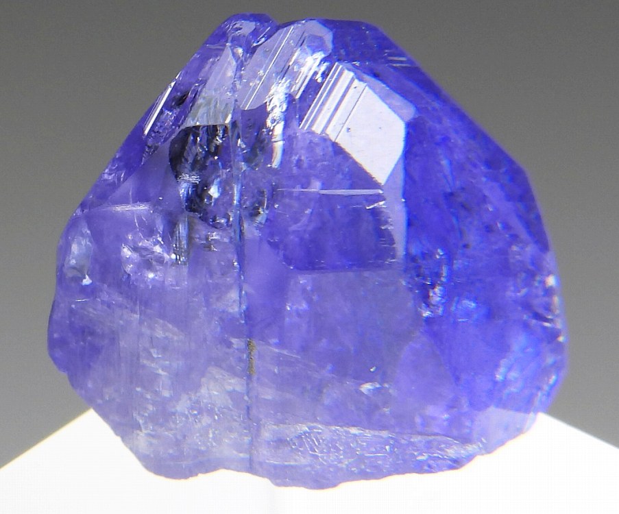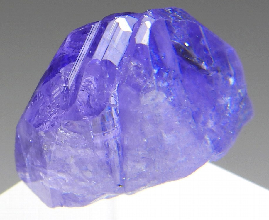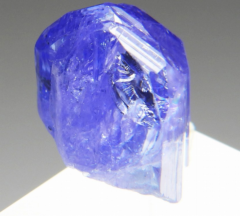 大変美しい多色性が明瞭なタンザナイトの結晶です。通常光源下で撮影。※液晶モニターの前では偏光された光源の影響で写真よりさらに多色性が極端に強調されて見えます。