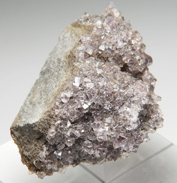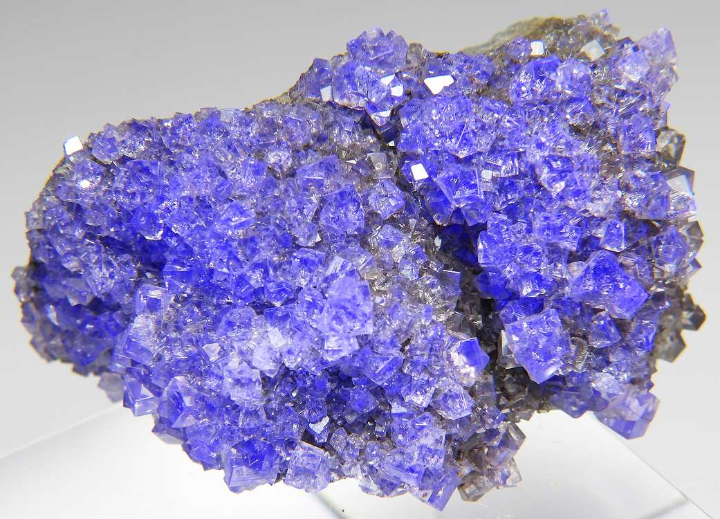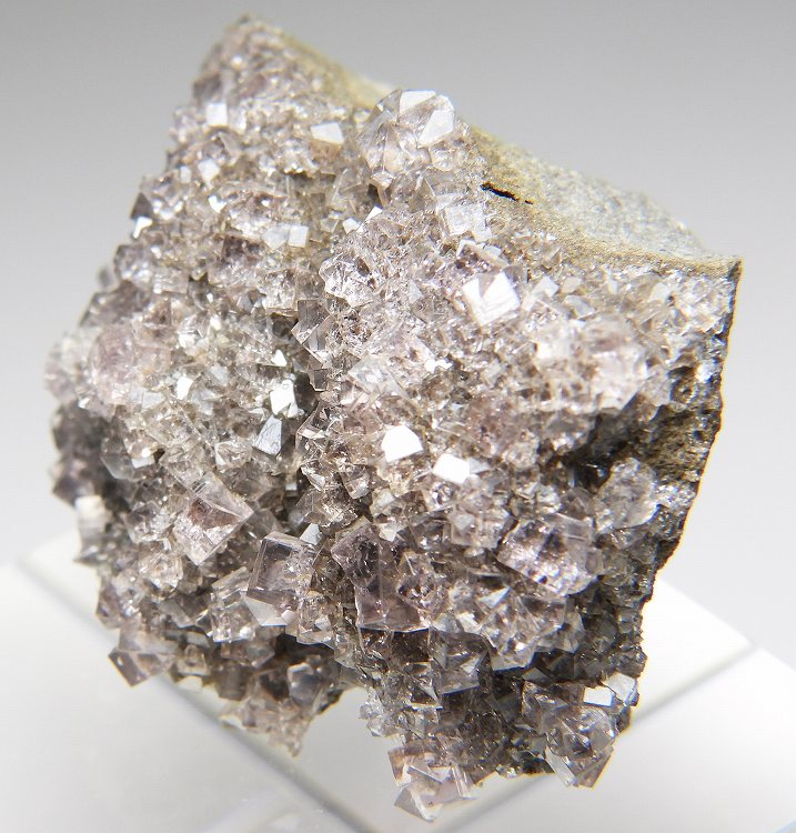 往年のウエスト・パスチャー鉱山で産したフローライト。透明度の高いライトパープルの美しい結晶群です。太陽光でも蛍光し、紫外線長波で明るく蛍光します。