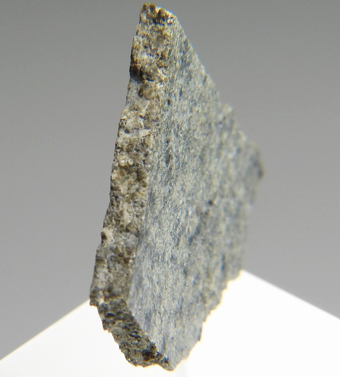 NWA 12269は、2018年7月に北西アフリカで回収・報告された、火星起源の火成岩「シャーゴッタイト」です。組織は比較的細粒なインターサータル組織を呈しており、輝石の結晶間をガラス質や細粒鉱物が埋めています。火星からの放出時の衝撃でガラス化したマスケリナイトを含んでいるのも特徴です。総回収量は1679g。