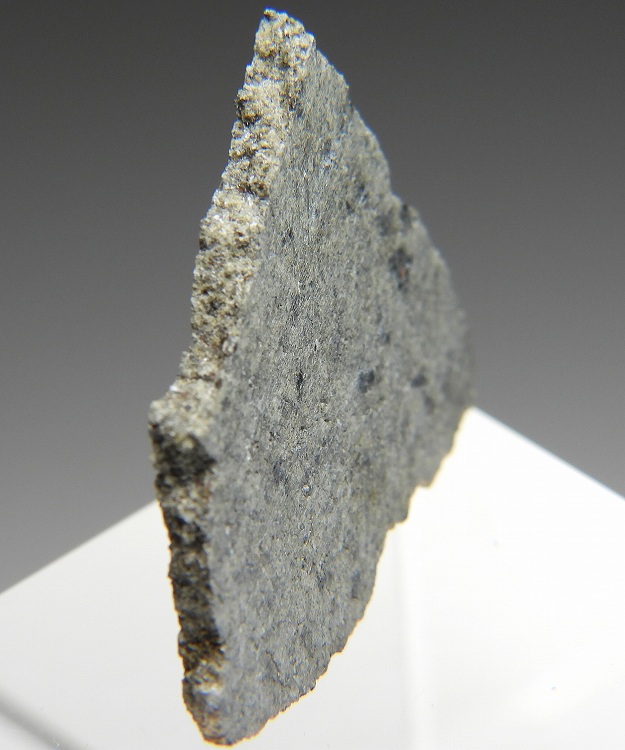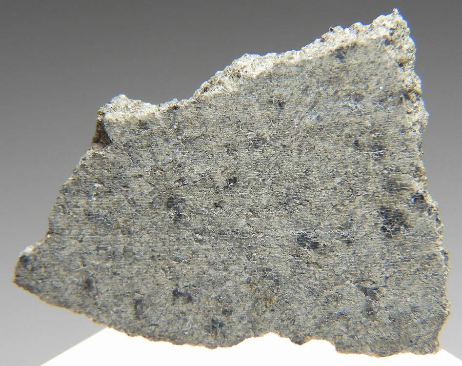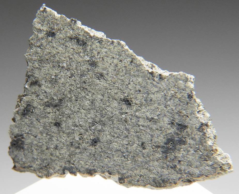 NWA 12269は、2018年7月に北西アフリカで回収・報告された、火星起源の火成岩「シャーゴッタイト」です。組織は比較的細粒なインターサータル組織を呈しており、輝石の結晶間をガラス質や細粒鉱物が埋めています。火星からの放出時の衝撃でガラス化したマスケリナイトを含んでいるのも特徴です。総回収量は1679g。