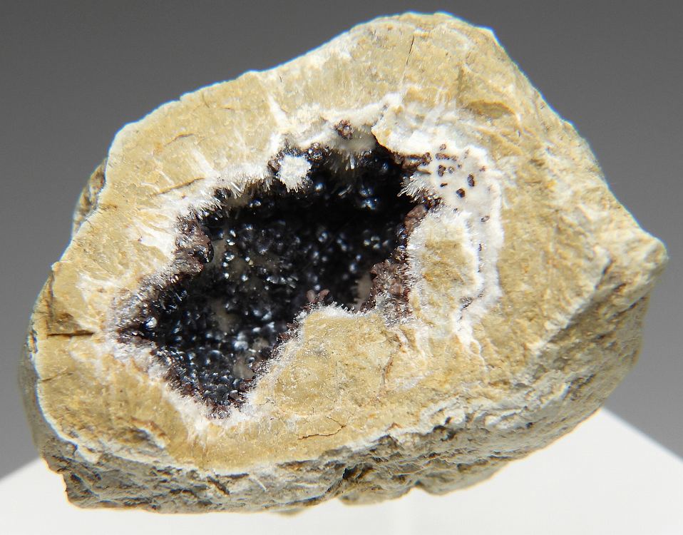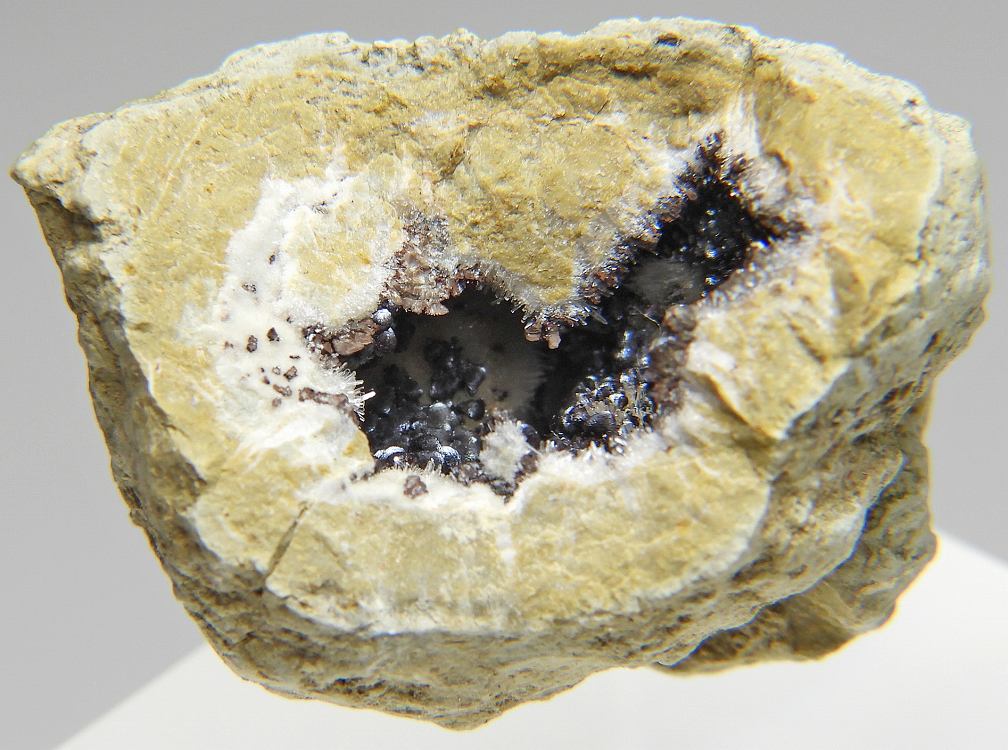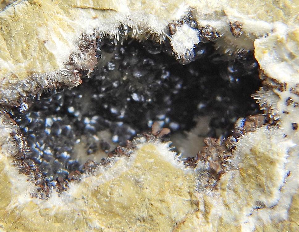 ノジュール中に成長したアラゴナイトと赤褐色のクトナホラ石の共生標本です。