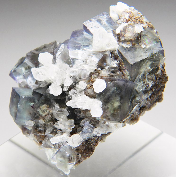 迷彩色の美しい結晶群。紫外線長波で蛍光し白熱灯下でカラーチェンジします。