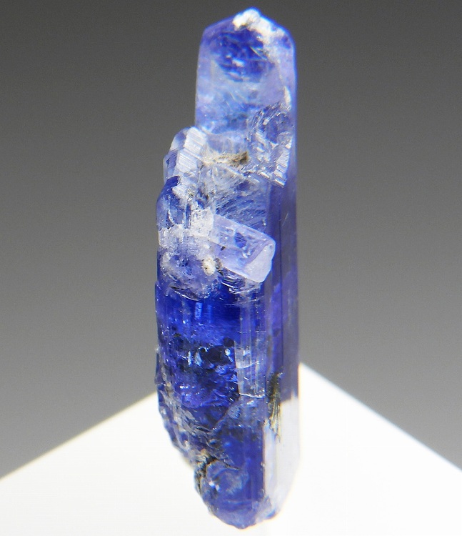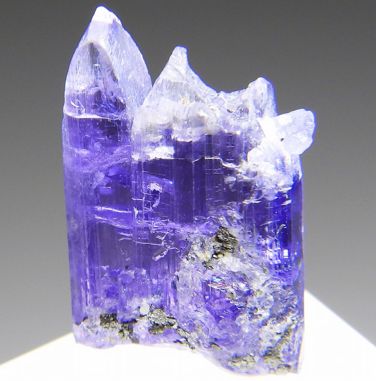 大変美しい多色性が明瞭なタンザナイトの結晶です。通常光源下で撮影。※液晶モニターの前では偏光された光源の影響で写真よりさらに多色性が極端に強調されて見えます。