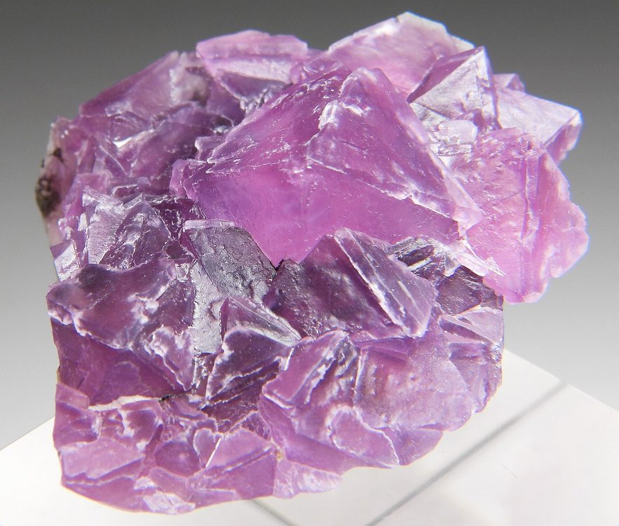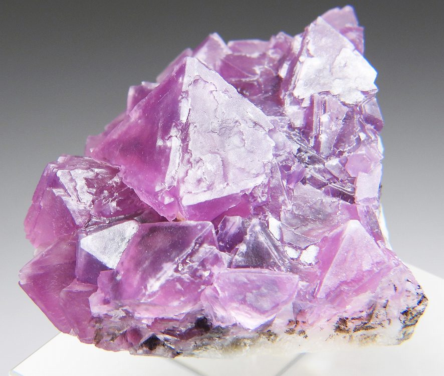 ラズベリーカラーの八面体結晶群です。