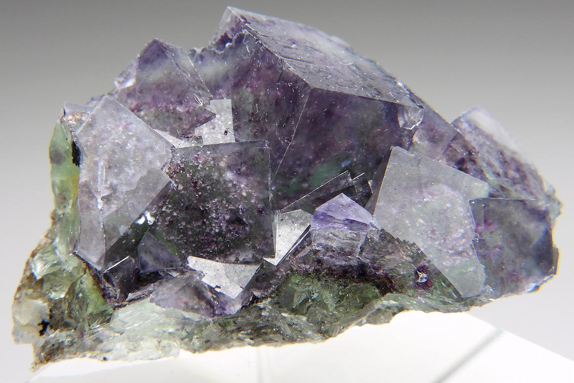 迷彩色の美しい結晶群。紫外線長波で蛍光し白熱灯下でカラーチェンジします。