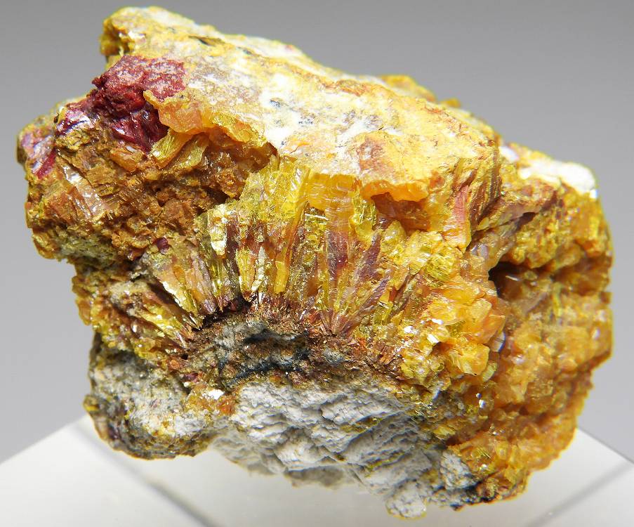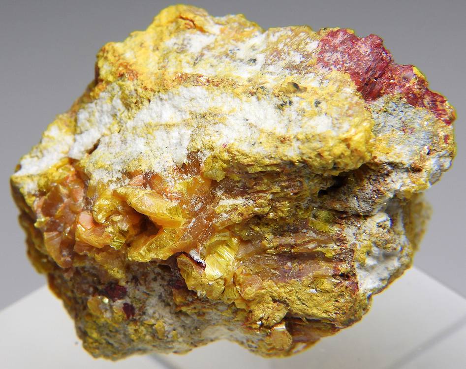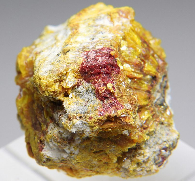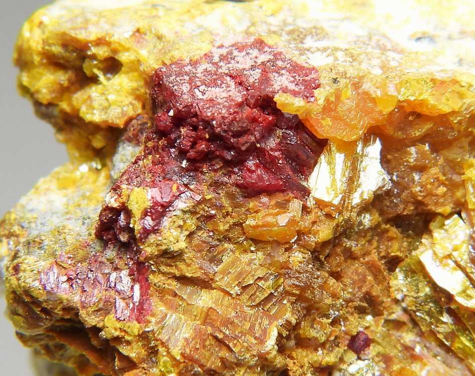 ロランド鉱はタリウムと砒素の硫黄の硫塩鉱物。アルシャル鉱山が原産地であり主要産地です。太陽ニュートリノの観測に利用されています。黄色部は石黄です。