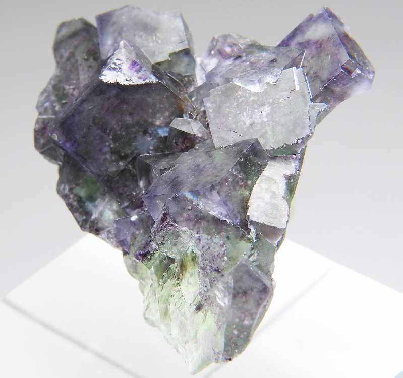 迷彩色の美しい結晶群。紫外線長波で蛍光し白熱灯下でカラーチェンジします。