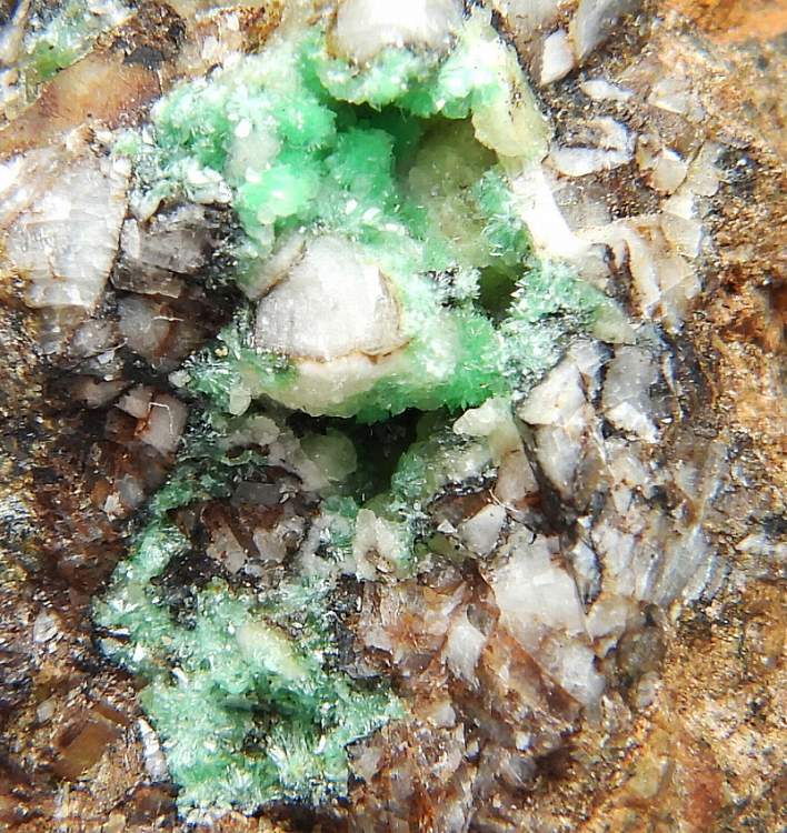 空隙にニッケル華の綺麗な結晶群が見られます。