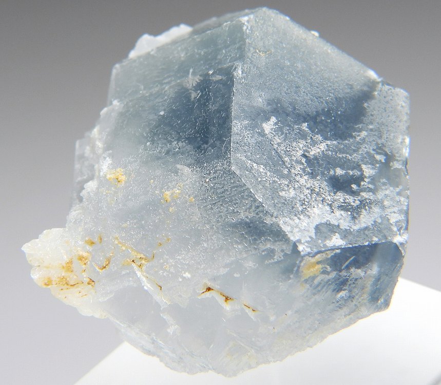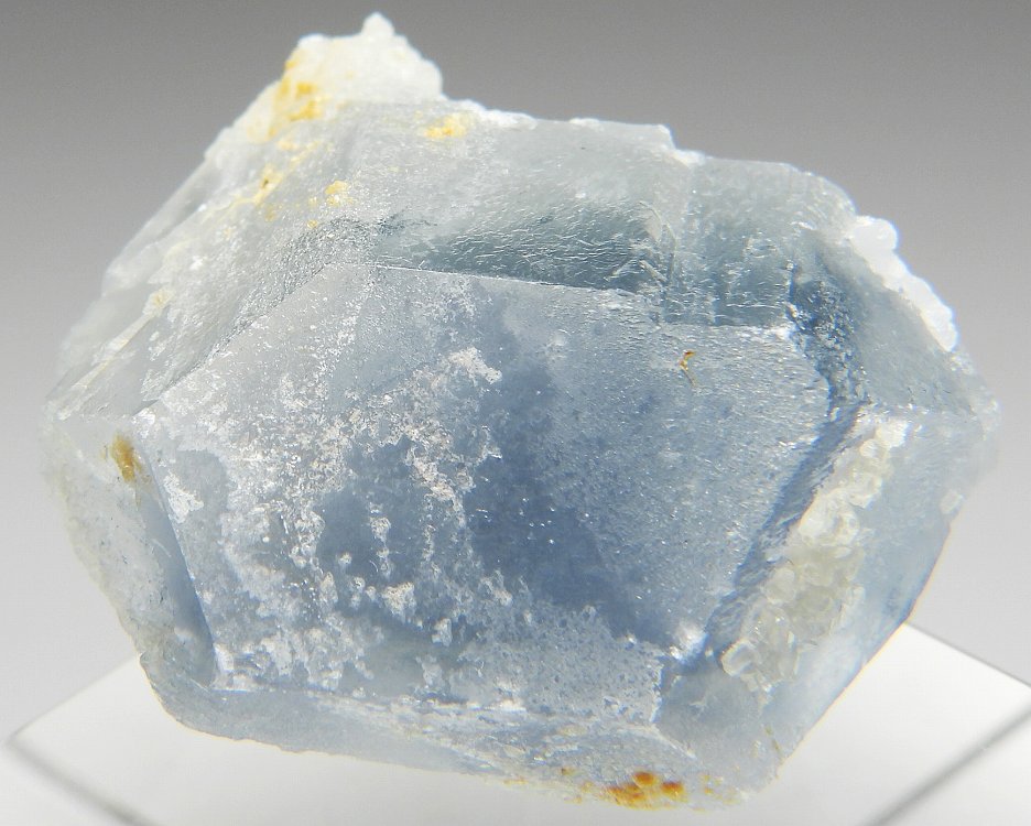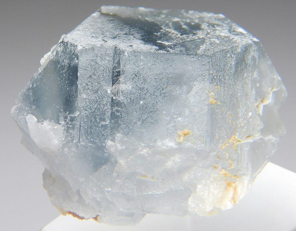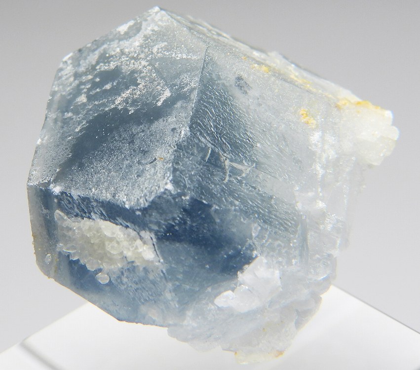 この産地ではカルサイトを伴って産出し、結晶内に濃淡がみられる天青石です。