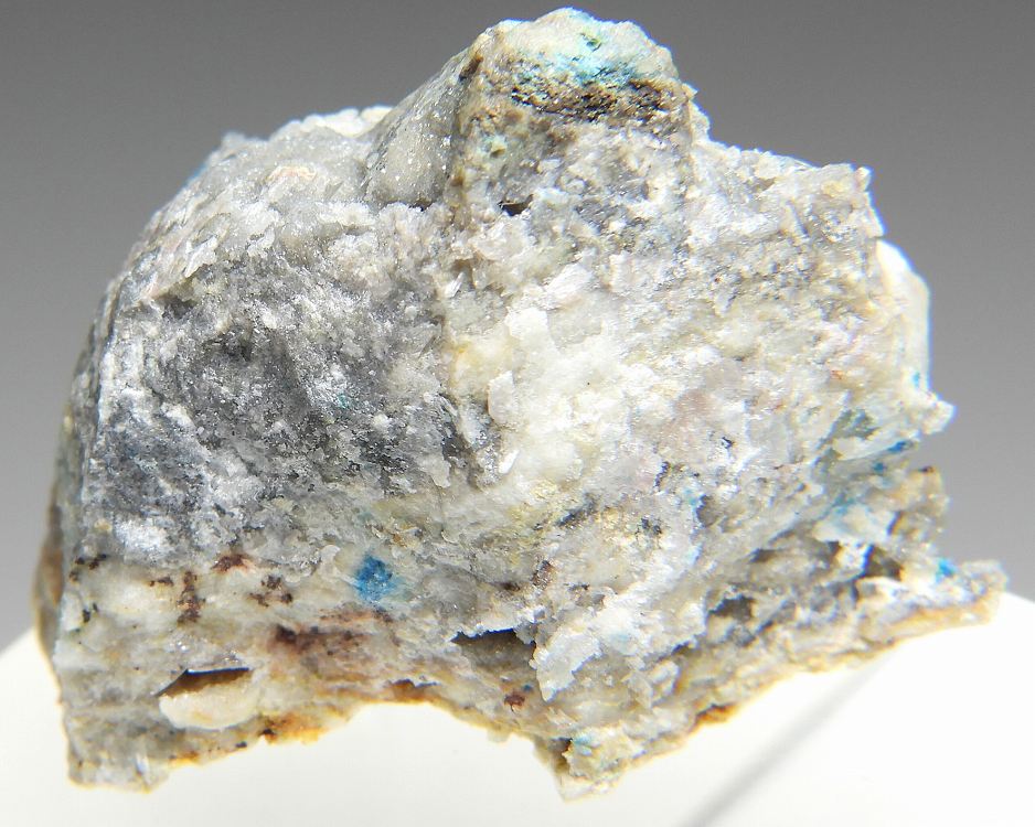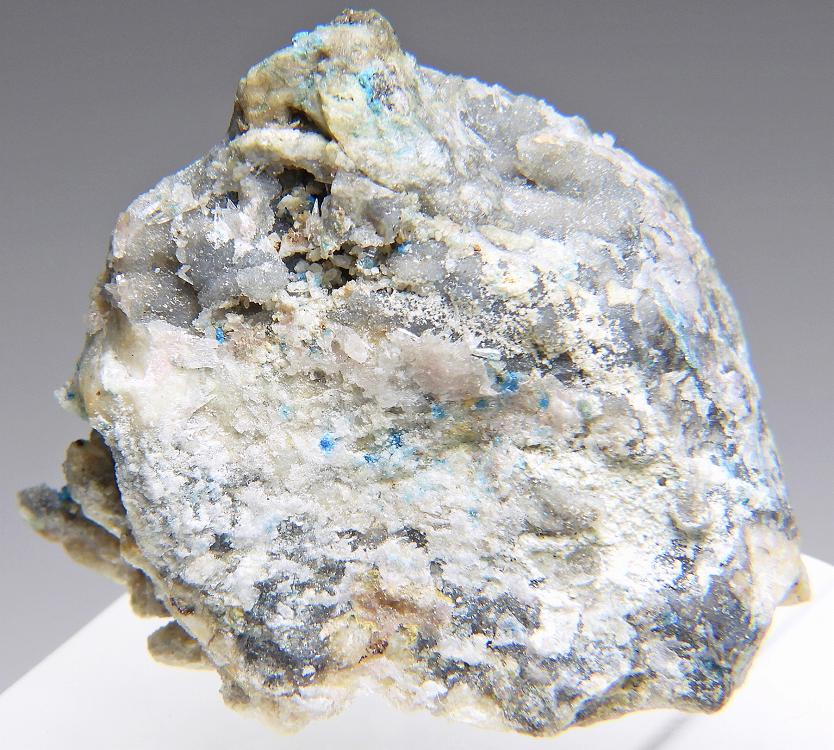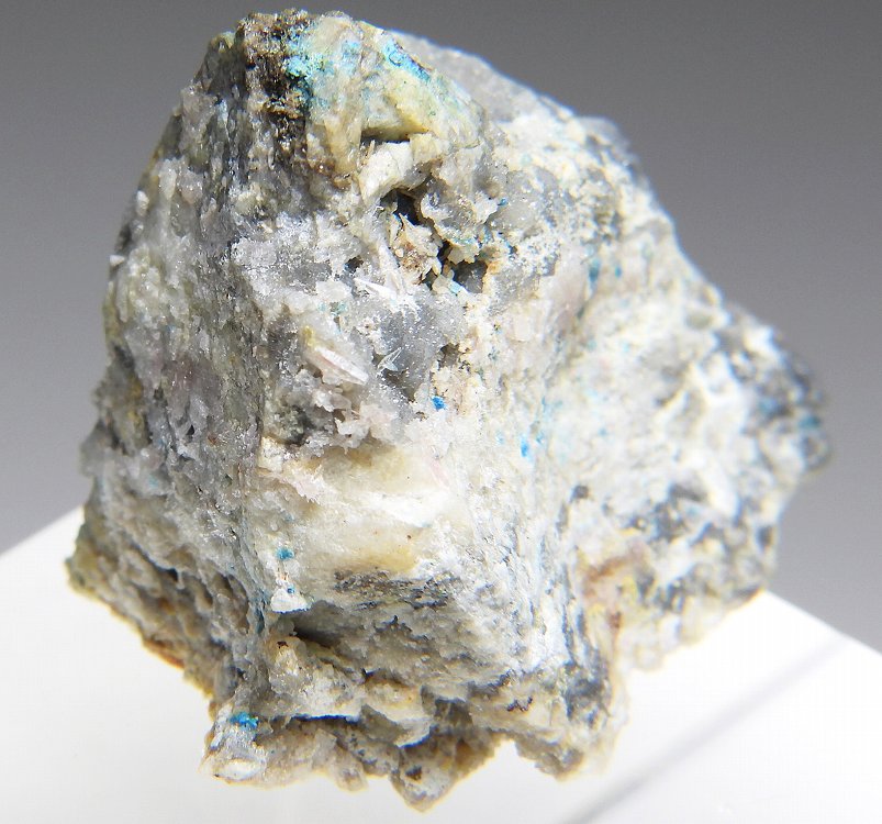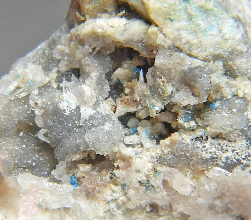 空隙に成長したクリアなペンフィールド石の結晶群に青空色のボレオ石が共生します。