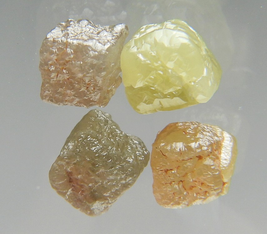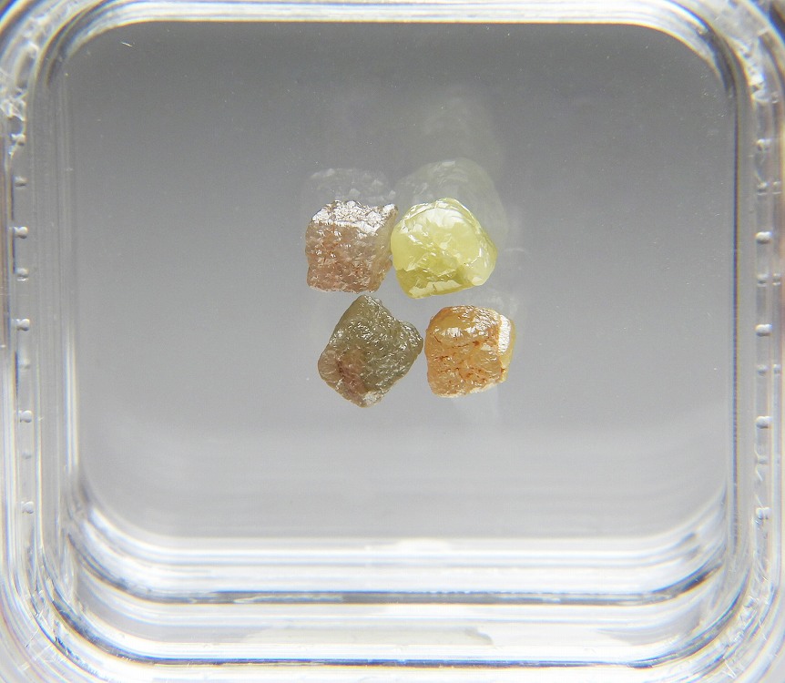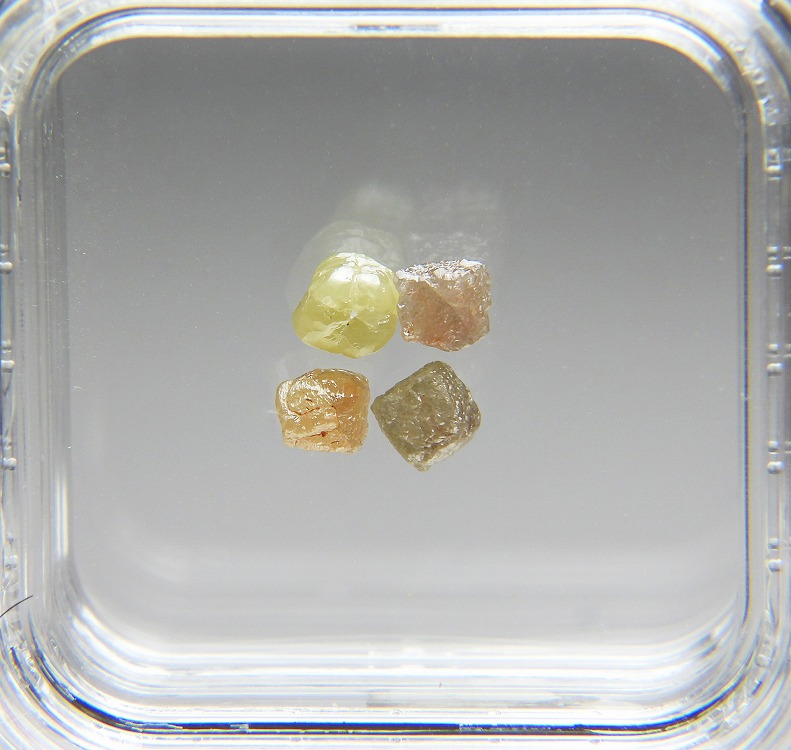 この産地特有のキュービックで産するダイアモンド。カラーバリエーションがあります。4点セット。