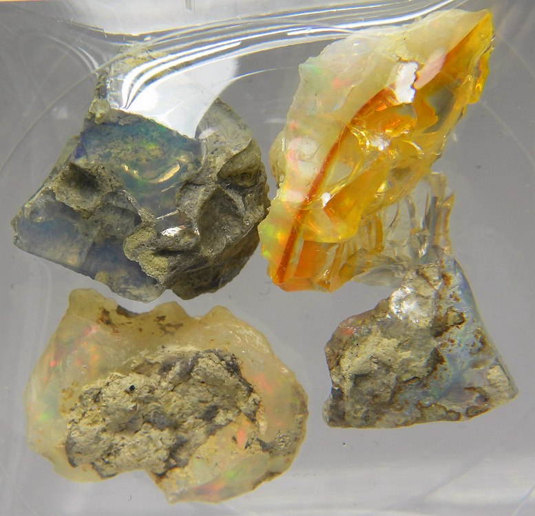 大変美しい遊色を見せるエチオピアンオパール。乾燥保管処理済品。4個セット。