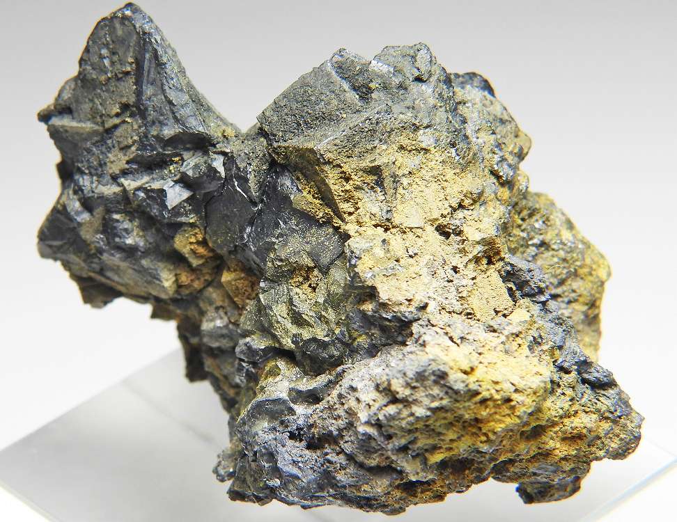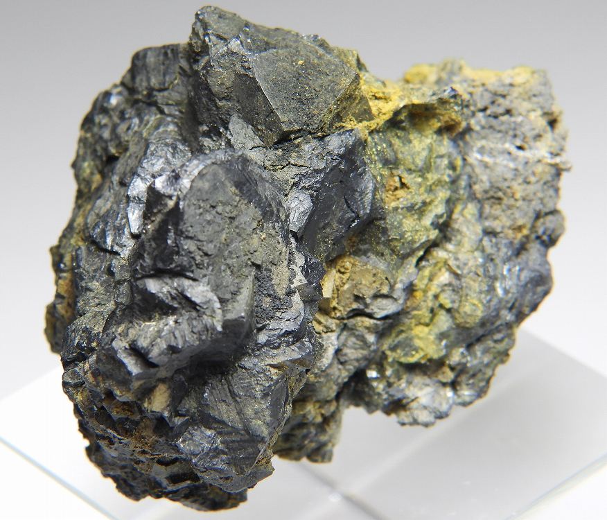 高品位の閃ウラン鉱を産した名産地ですが、現在は閉山し国の管理下にあり標本の採集は一切できません。結晶形状が見られる得難いリッチな標本でベクレル石が共生します。表面線量750μSv/h~。
