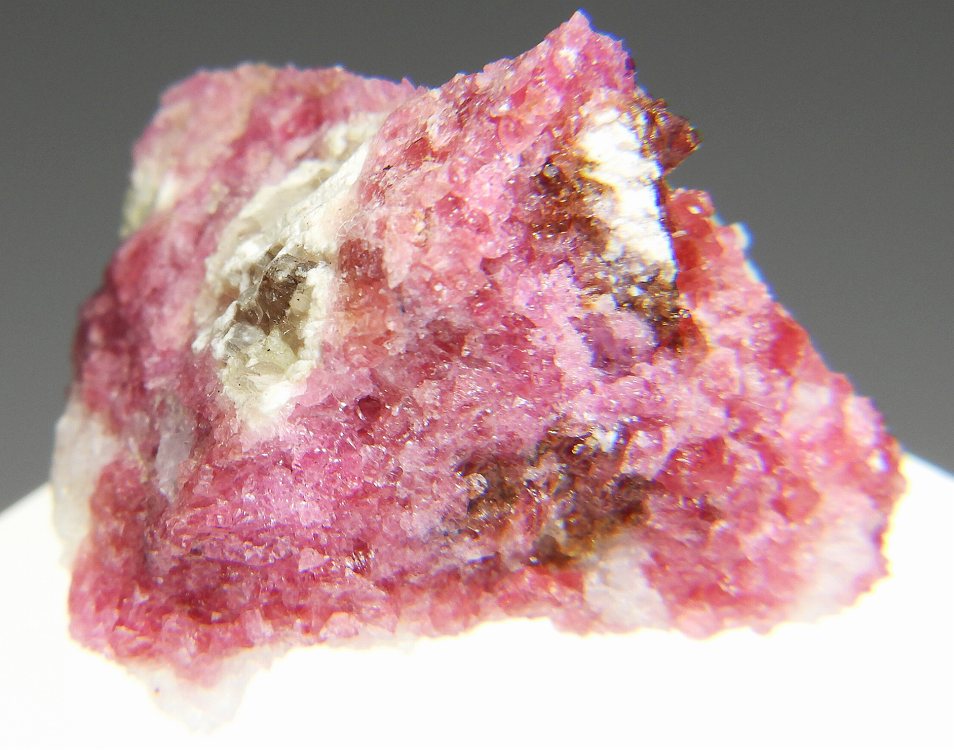 ユージアル石中に見られるブラソフ石です。紫外線短波で蛍光します。