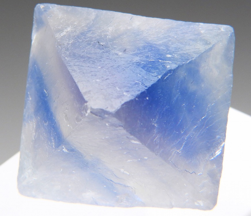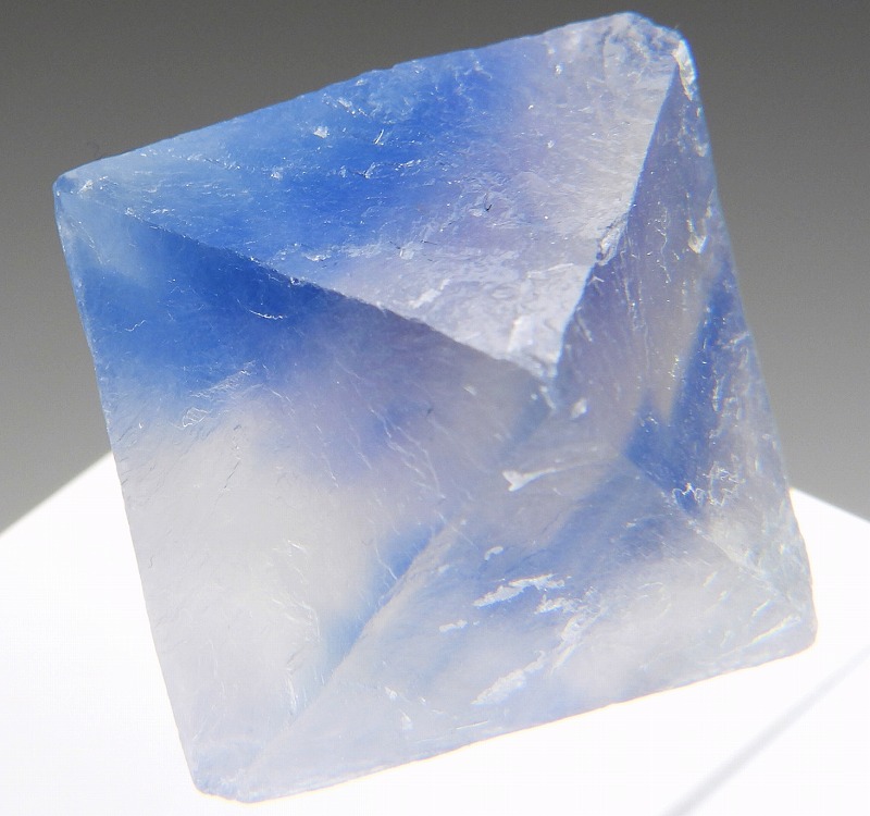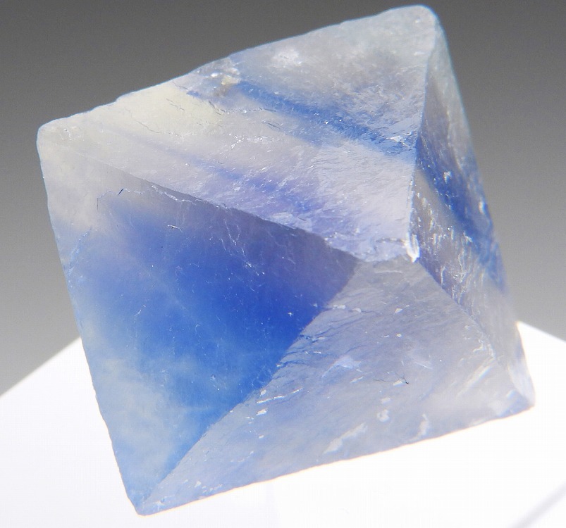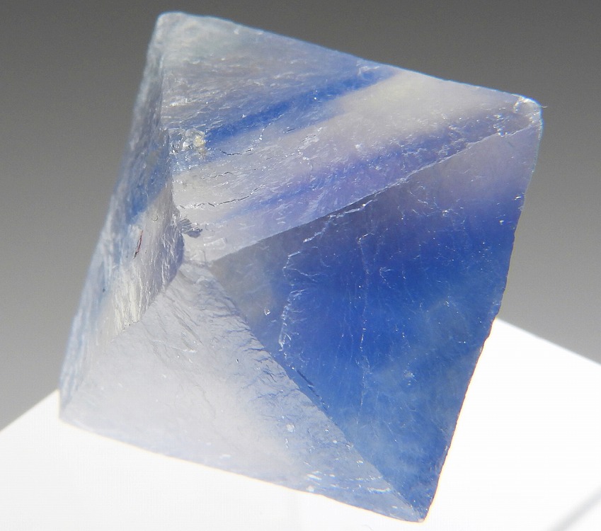ニューメキシコのブルーフローライトを劈開面に沿って八面体にカットした標本です。白熱灯下でカラーチェンジします。